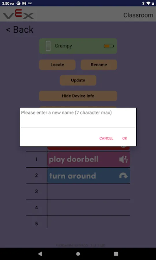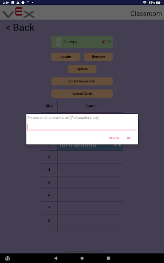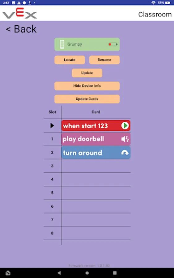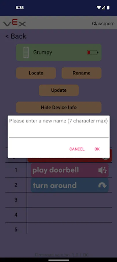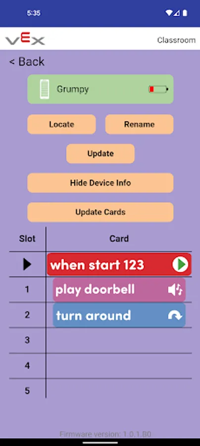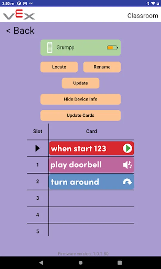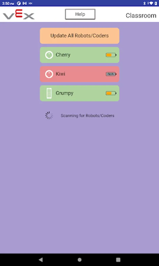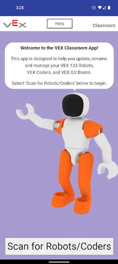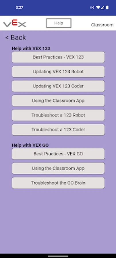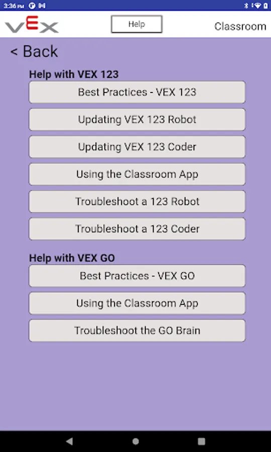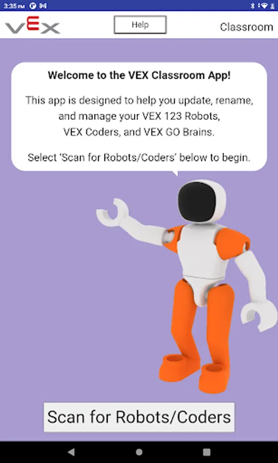 The VEX Classroom app allows users to manage their classrooms full of VEX GO robotics hardware. Users can use VEX Classroom to: