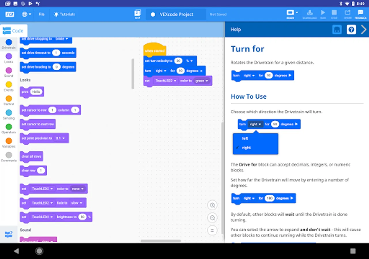 From driving forward, making precise turns, setting speed, and stopping precisely, VEXcode makes it easier than ever to control a robot.