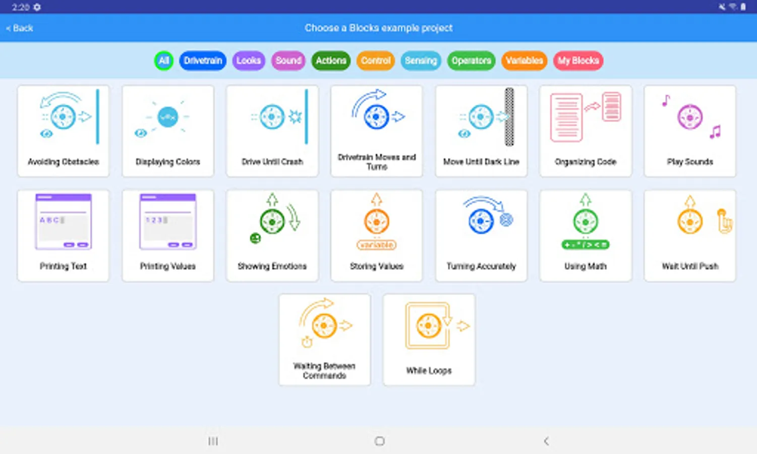 VEXcode Blocks is the perfect platform for those new to coding. Students use the simple drag and drop interface to create functioning programs. Each block's purpose can easily be identified using the visual cues like its shape, color, and label. We've designed VEXcode Blocks to allow those who are new to robotics to get their robot up and running faster. Now, students can focus on being creative and learning computer science concepts, not stuck trying to figure out the interface.