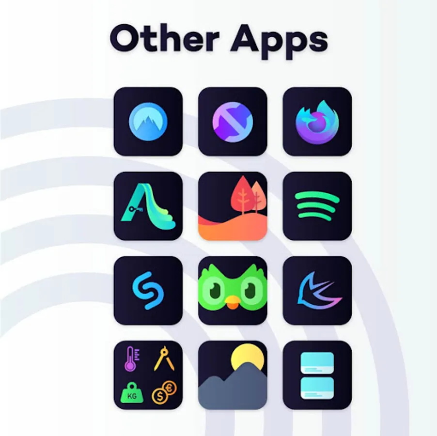 Gradient dark icon pack is a modern looking icon pack with beautiful gradient icons and a subtle shadow to make the icons pop.