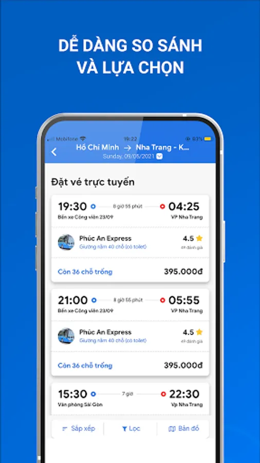 VeXeRe Đại lý có kết nối API VeXeRe giúp bạn đặt vé nhanh chóng từ hệ thống. Bạn dễ dàng truy cập kho vé xe lớn nhất Việt Nam với 5000+ tuyến đường, 2000+ nhà xe và 400+ bến xe. Cùng nhiều dòng xe hiện đại, xu hướng đầy tiện nghi như giường phòng, limousine, giường nằm cao cấp.