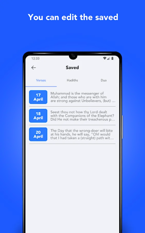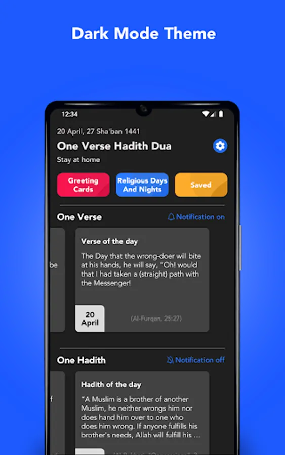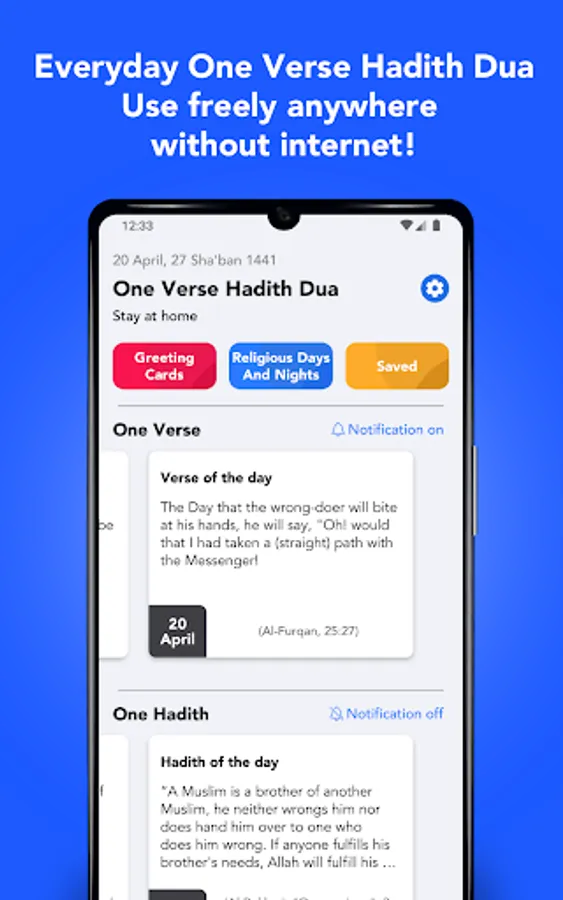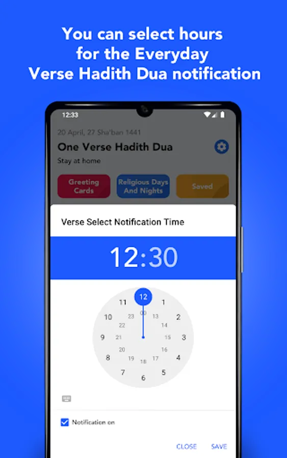 You can select hours for the Everyday Verse Hadith Dua notification. By setting the notification time, it sends you a verse with daily notification.