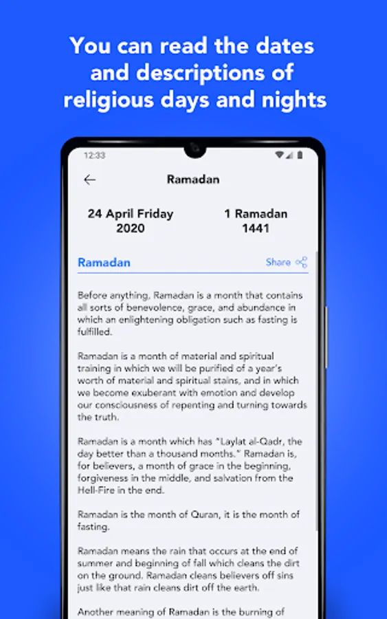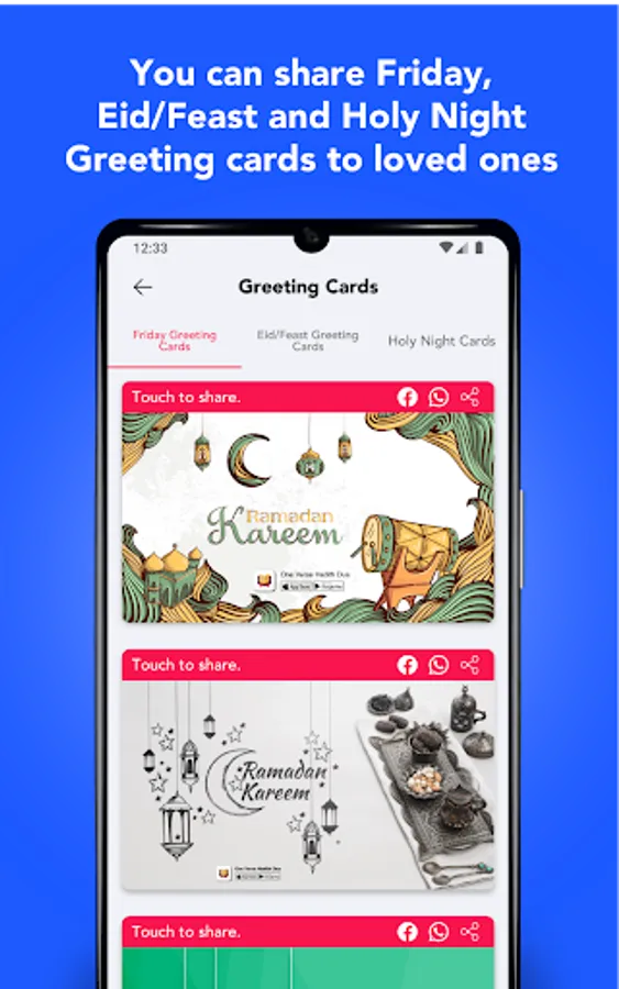 You can share Verses, Hadiths, Dua on social media and send messages to your friends.