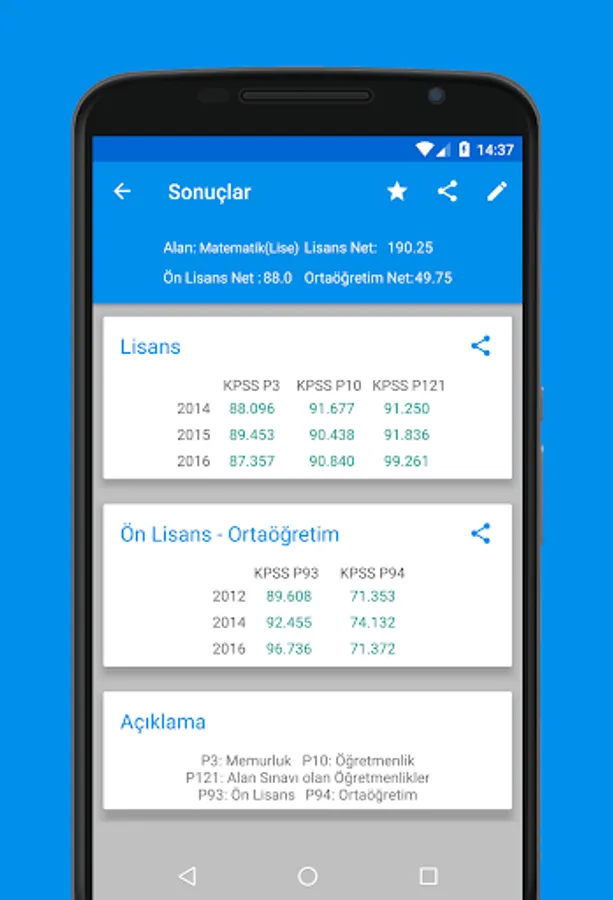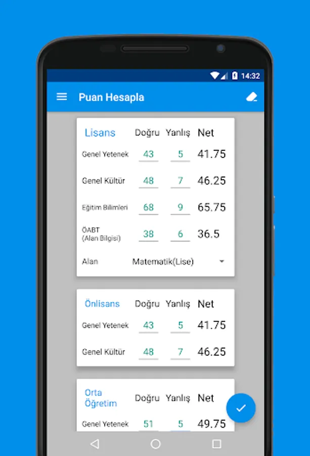 • You can easily calculate your undergraduate, educational information, field knowledge, associate degree, secondary education scores.