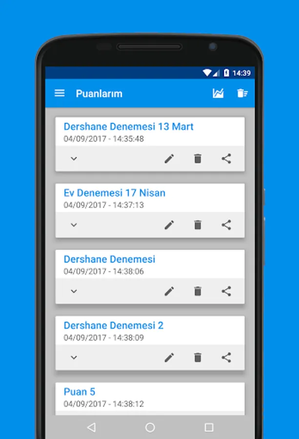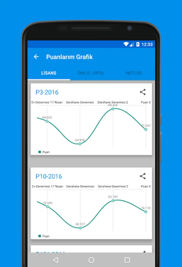 • Click on the graph icon to see your scores graphically.