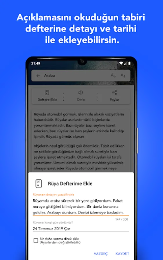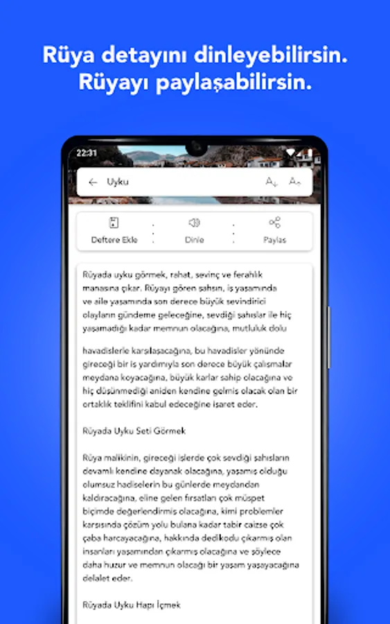 With the dream interpretation application, you can interpret your dreams without the need for the Internet.