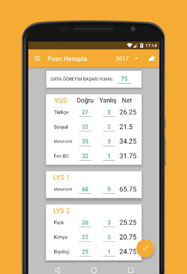 You can easily calculate your YKS and TYT scores by entering correct and incorrect numbers.
