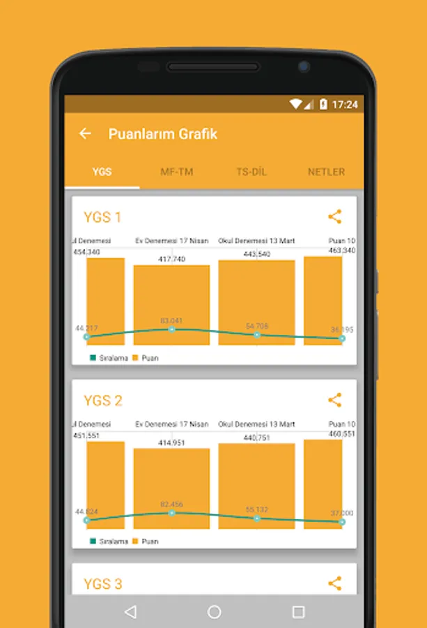 • Graphs are divided according to your score type and net. You can observe the changes with the graphics as ranking and points.
