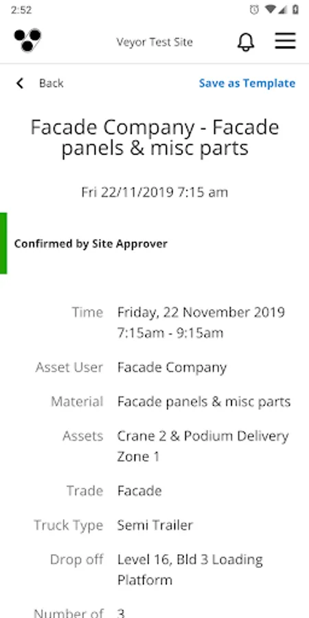 - Request bookings for assets such as cranes, loading zones, hoists, forklifts and so on.