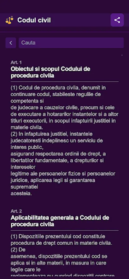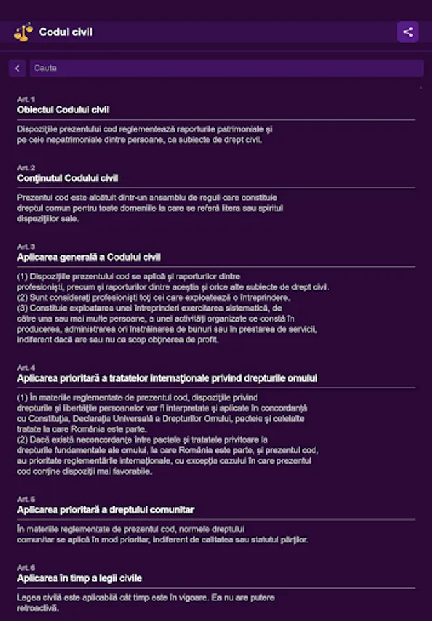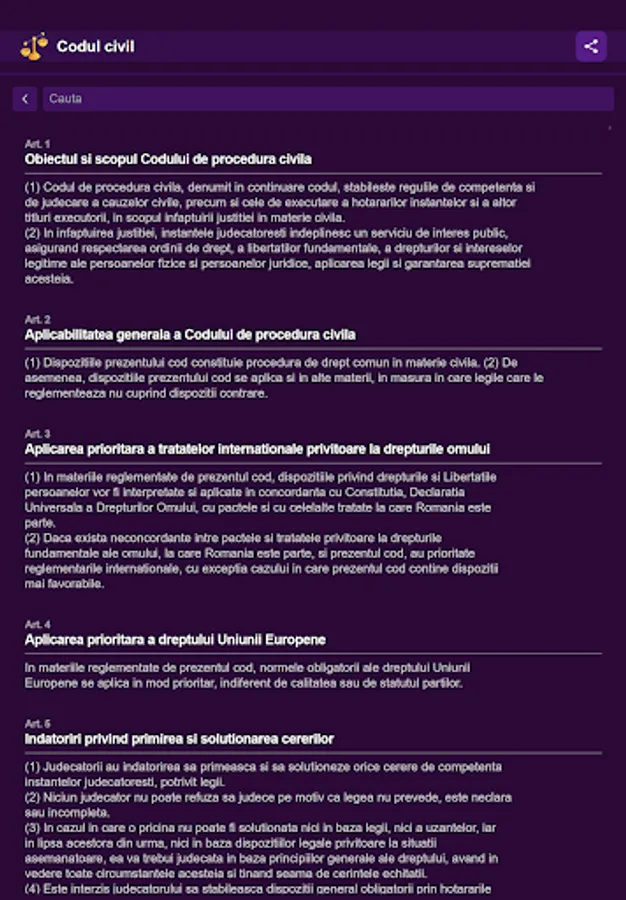 You will find everything you are looking for with the help of the advanced, intuitive and very easy to use search mode, now being more accessible than ever to find the article you are looking for in the Civil Code and the Civil Procedure Code.