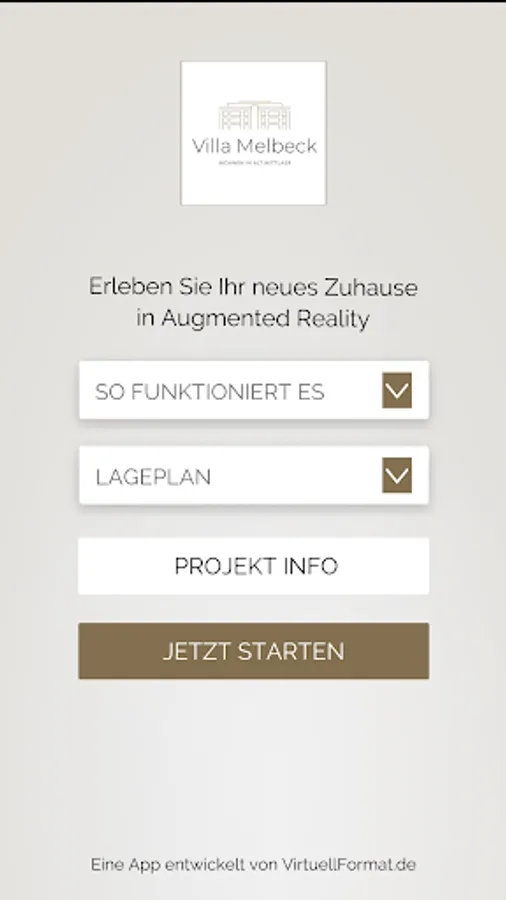 The mobile app "Villa Melbeck - Virtual Format AR" is a 3D presentation of architectural projects or construction measures in augmented technology.