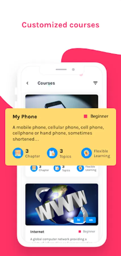 Digisakshar offers carefully curated learning material in a variety of learning areas. Browse it or explore it in detail. Users can also test their own knowledge, mark learning status, bookmark favourite topics, receive notifications that keep you updated on site changes and do a lot more with Digisakshar. The app's built in video based tutorial modules help users learn at their own pace without the need of a trainer. Multi level assessment modules helps them assess their learning.
