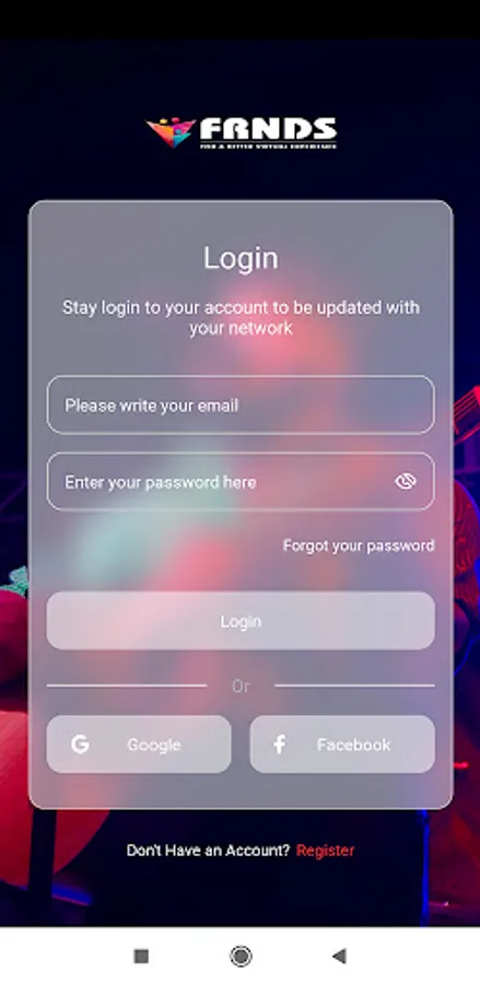 Vfrnds INC is a Social Networking Platform. With our new feature, user can Vfrnds Posts, Photos and life moments with your Friends.