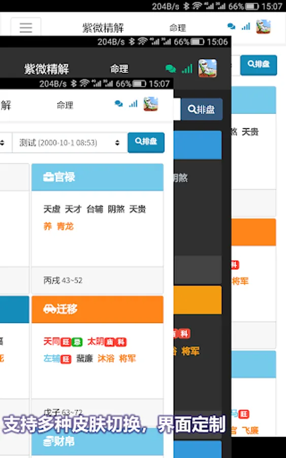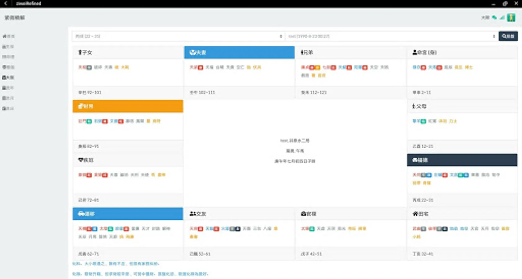 * The interface is optimized and user-friendly! In order to meet the needs of different users, our interface supports skinning, personalization, and two languages, Chinese and English (the analysis result under the English interface is still Chinese, because Ziwei terms cannot accurately translate other languages).