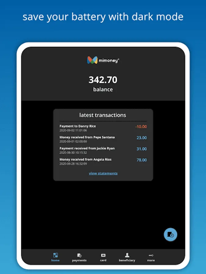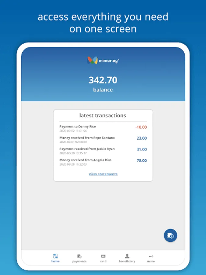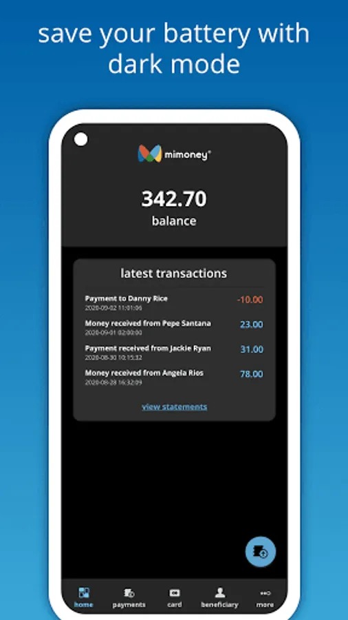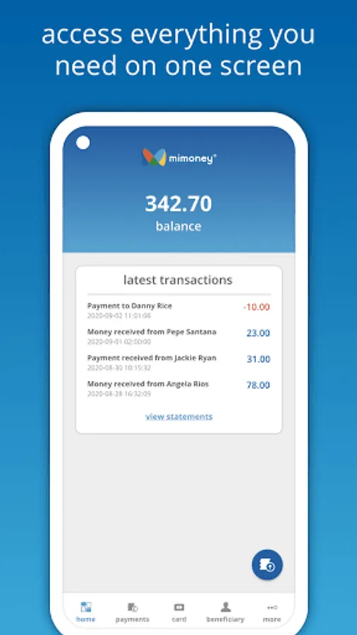 - Make free instant payments to other mimoney account holders