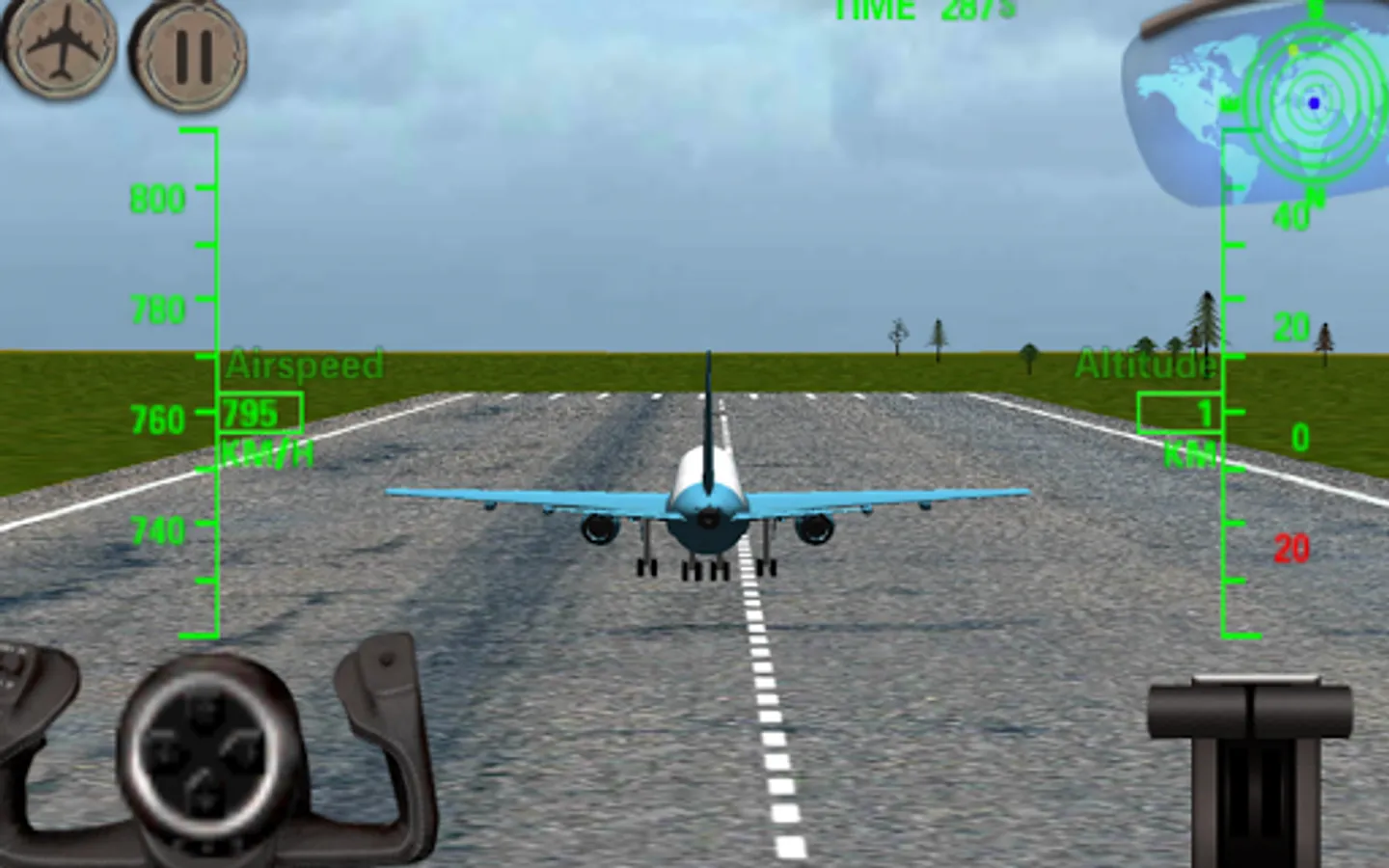 This new android flight simulator will challenge you to practice landing and taking off your airplane. The challenge of this flight sim 3D game is that you have a limit amount of time to get your commercial airplane safely on the ground. And landing and take-off is not all you need to learn with this 3D flight game, there is also a need for aircraft pilots that know how to taxi there airplane to the airport, and airport hangar.