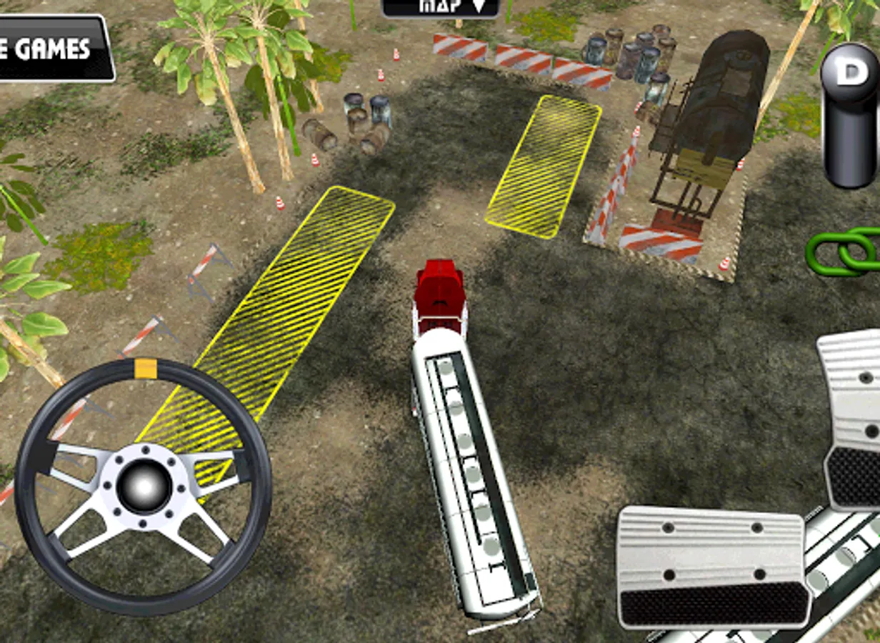 When you practice parking in a big truck like this, it would feel like fun, parking mania. Feeling like a monster truck. Use the steering wheel, brake and acceleration pedals and gear shift for precision driving fun. This 3D parking lot game is free to play, so everybody can improve their parking skills. We use realistic controls to imagine the real truck world, although it will still be a truck simulator. We have multiple levels with challenging to demonstrate your ability to park the truck. In the beginning you ‘just have to park’ the big monster truck, but when you get further you will get a longer one. Pick up the load and make sure it will stay on the truck. There will be difficult curves in the way, but with precision driving skills you should be able to make it to the parking spot and begin to show your parking skills. You can practice parking using your steering wheel, brake and acceleration pedals and your gear shift.