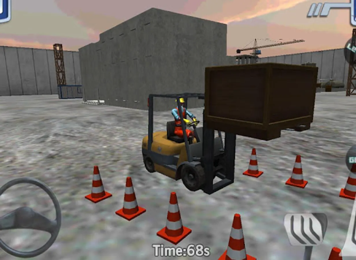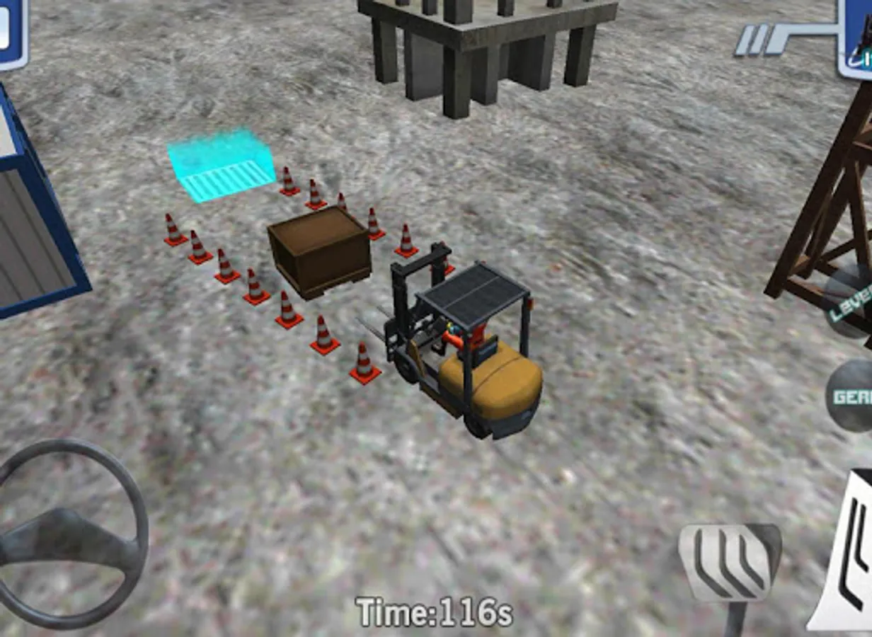 So you learned to parking and driving in 3D forklift parking Madness now its time to go in deeper to train the other skills you need to get a forklift driving certificate. So welcome again to one of the best forklift driving and parking games and more on google play. Just as in 3D forklift parking Madness you control your forklift with an on-screen steering wheel, acceleration and brake pedals, shift the gear to forward or backward as you need to maneuver around. This game is super fun if you love challenging forklift games that are more than the typical parking 3D games on google play.