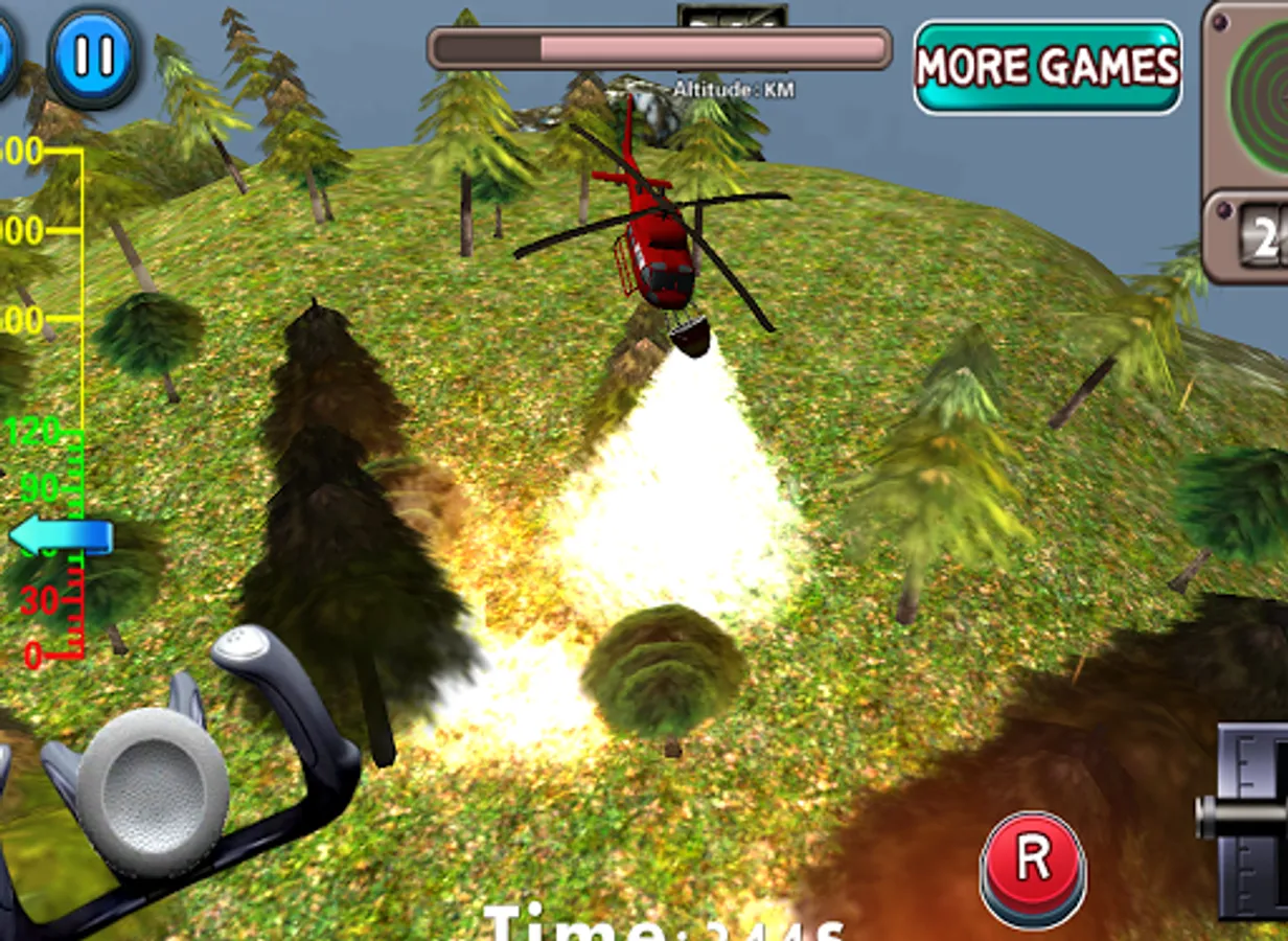 Great Heroes – Fire Helicopter is a special 3D flight simulator game and the first of his kind because this game is all about aerial firefighting. As a firefighter pilot you are going to use chemicals that may include water, water enhancers such as foams and gels to put a halt to the spreading wildfires. Your helicopter can hover over the fire and drop the water with chemicals on top of the fires.