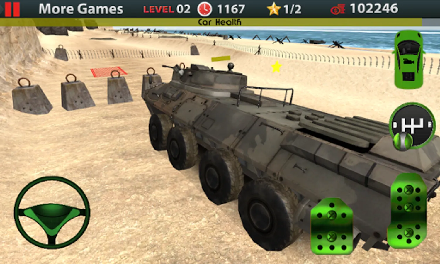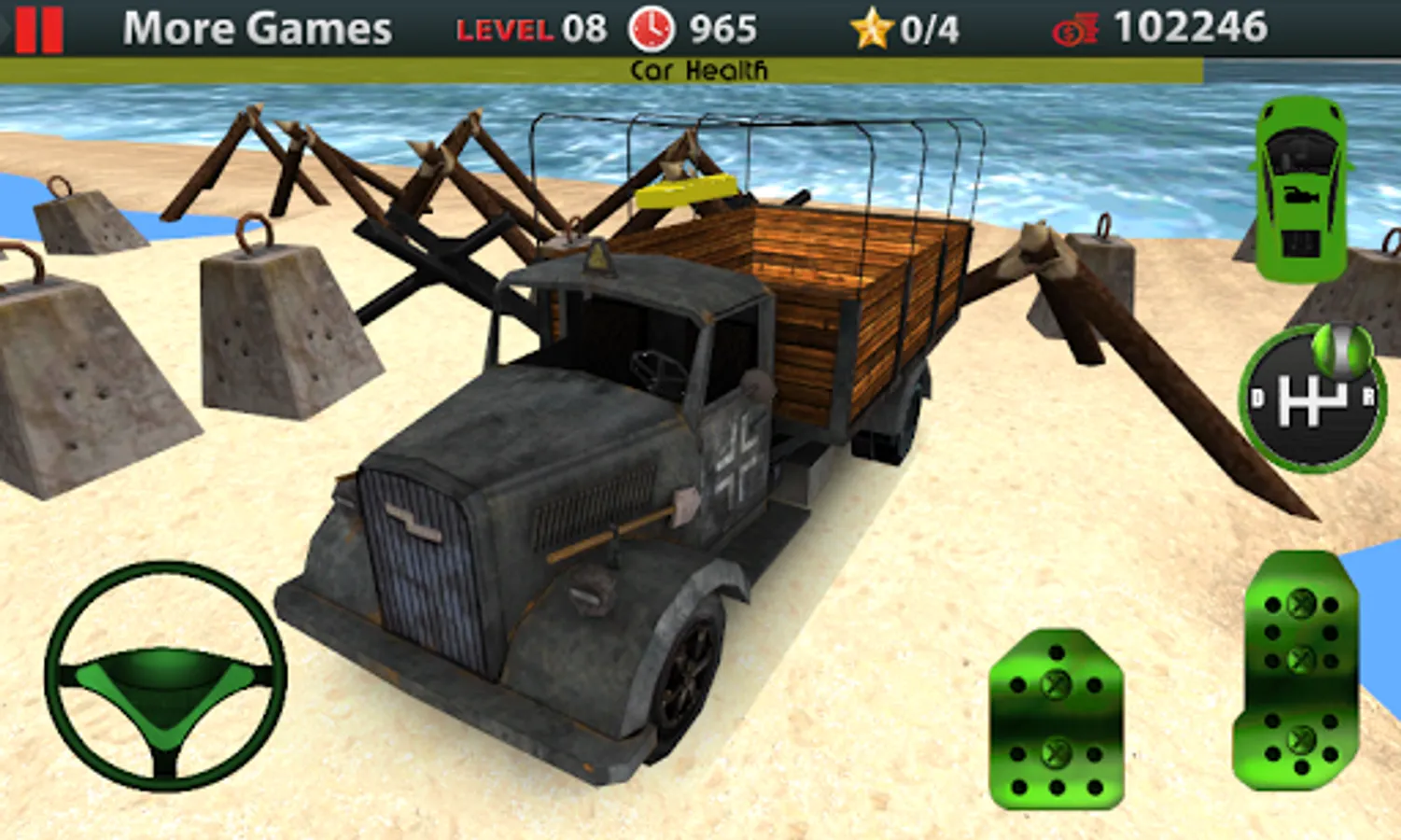 Army Parking Wars: WW2 is a parking game set in the WW2 era. So this means that you will park different kinds of army wars trucks, including some WW2 style trucks. You are on normandy beach also called Omaha Beach, it will not be easy to park your army truck here because of all the trenches! Be on guard and be swift!