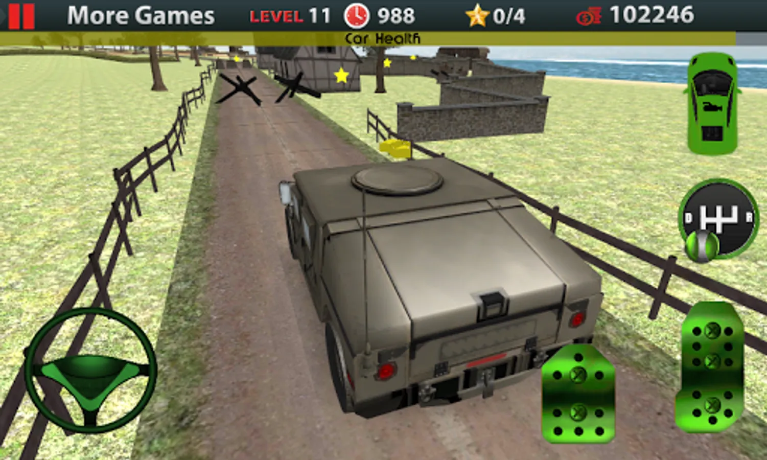 With every mission that you complete comes a new truck. The four different trucks will be more difficult to manage because of the power, size and handling of the army truck. Next to a APC, you can drive a German Truck, Hummer and of course, a real army tank! But don’t think that you can drive over everything just because you have an army truck, you’ll have to drive and park correctly to complete every missions!