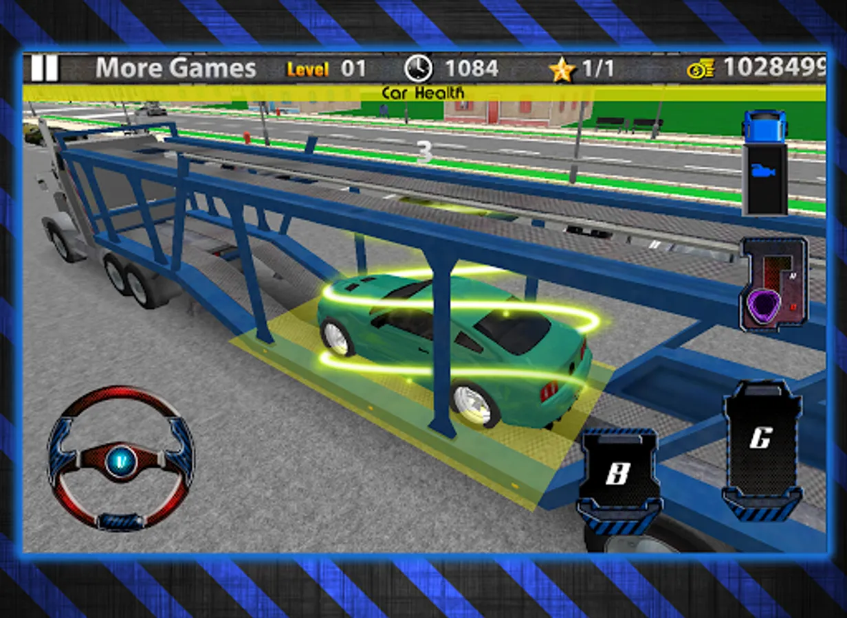 This newest Car transporter parking challenges you to do your job carefully, time is not on your side, so be on time at the garage. ive and park a large American truck with cars in the back keep the truck on the road in this new exciting parking challenge game on android. Start enjoying this easy parking 3d game with loads of different features. Drive the truck with on screen controls.