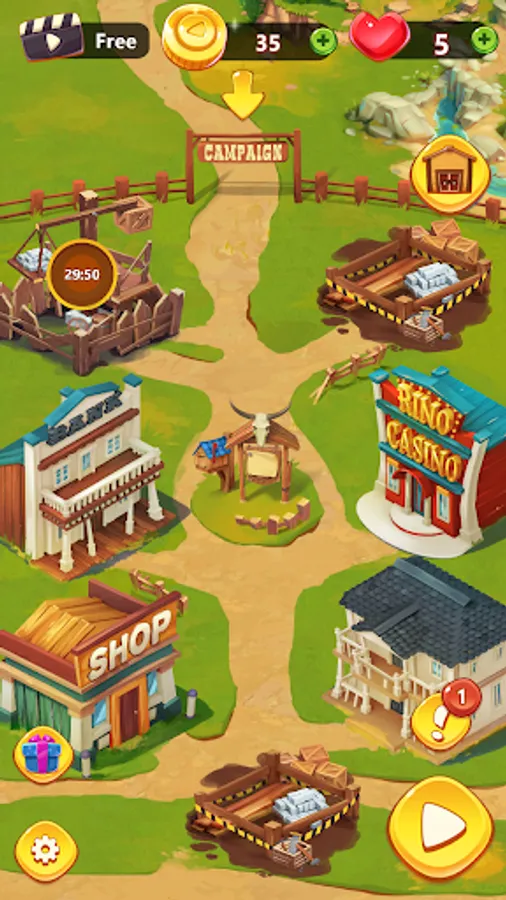 Develop new buildings, harvest resources in challenging match-3 puzzles and expand the village into a wealthy city. Your crew will help you to mine resources that you can use for building. Collect wood, stone, iron and coal for growth in your old country town. Solve quests and puzzles to get rewards. Do everything you can to grow your village. Can you take the ranch and make the town square shine again?
