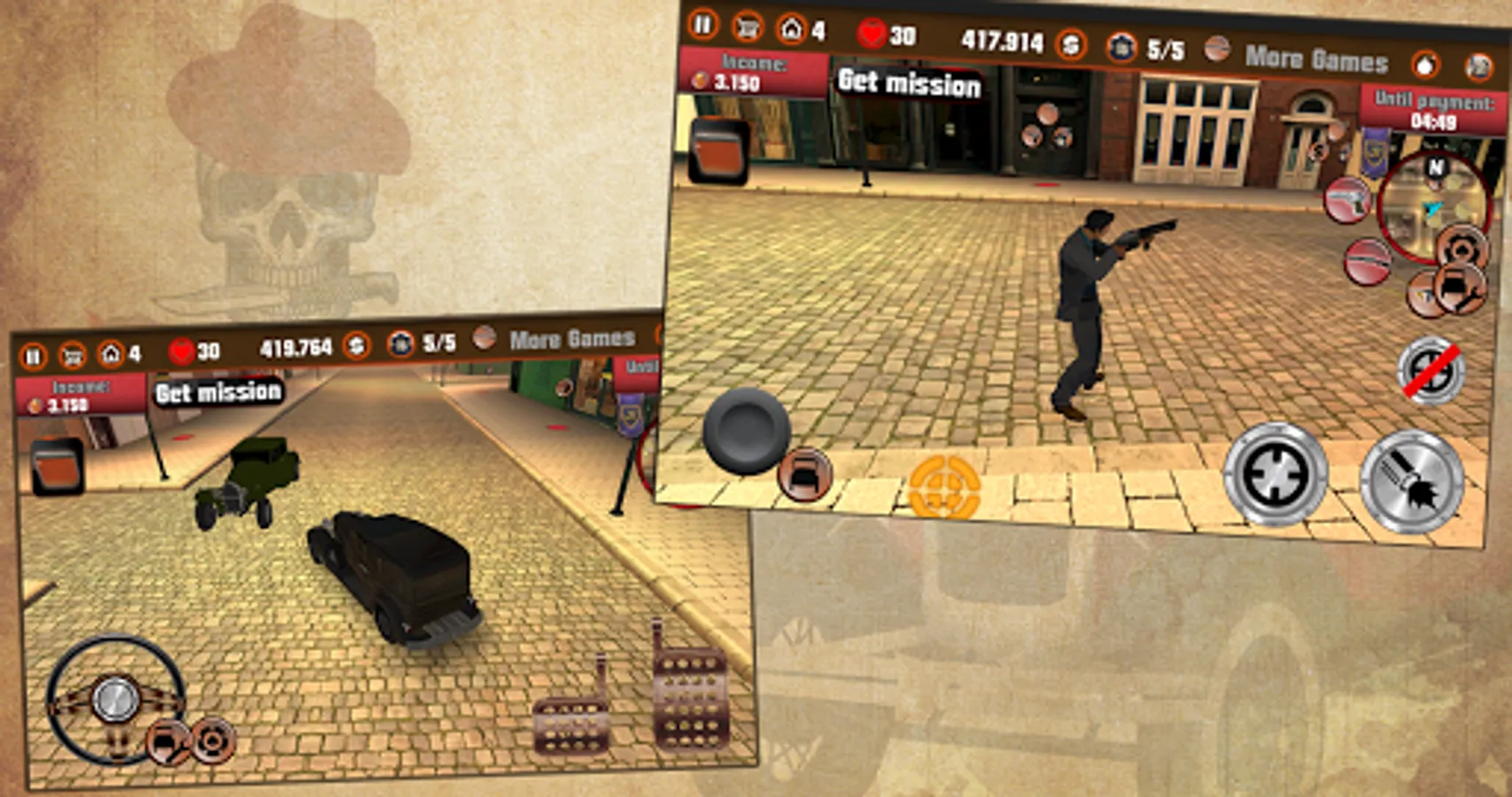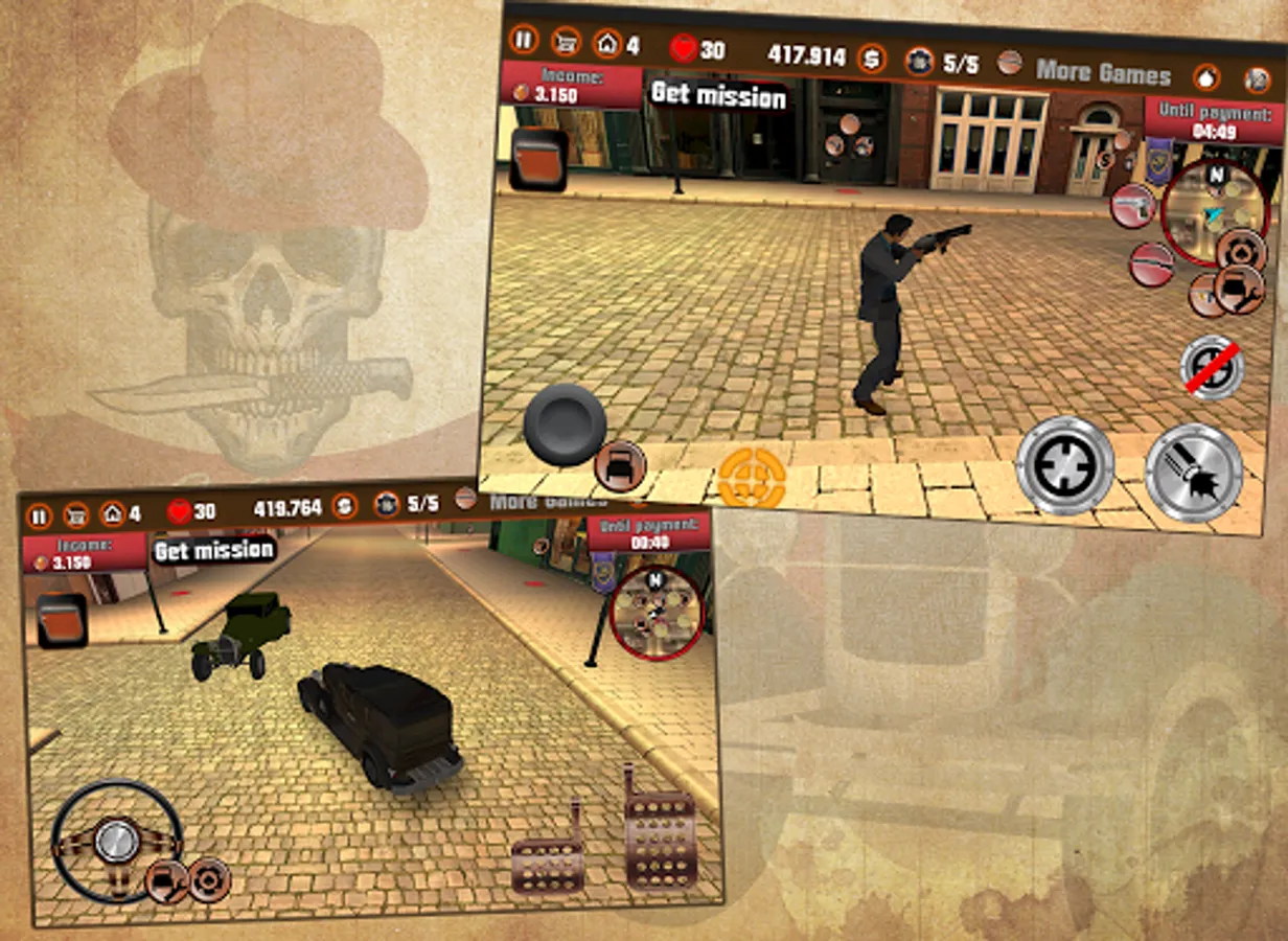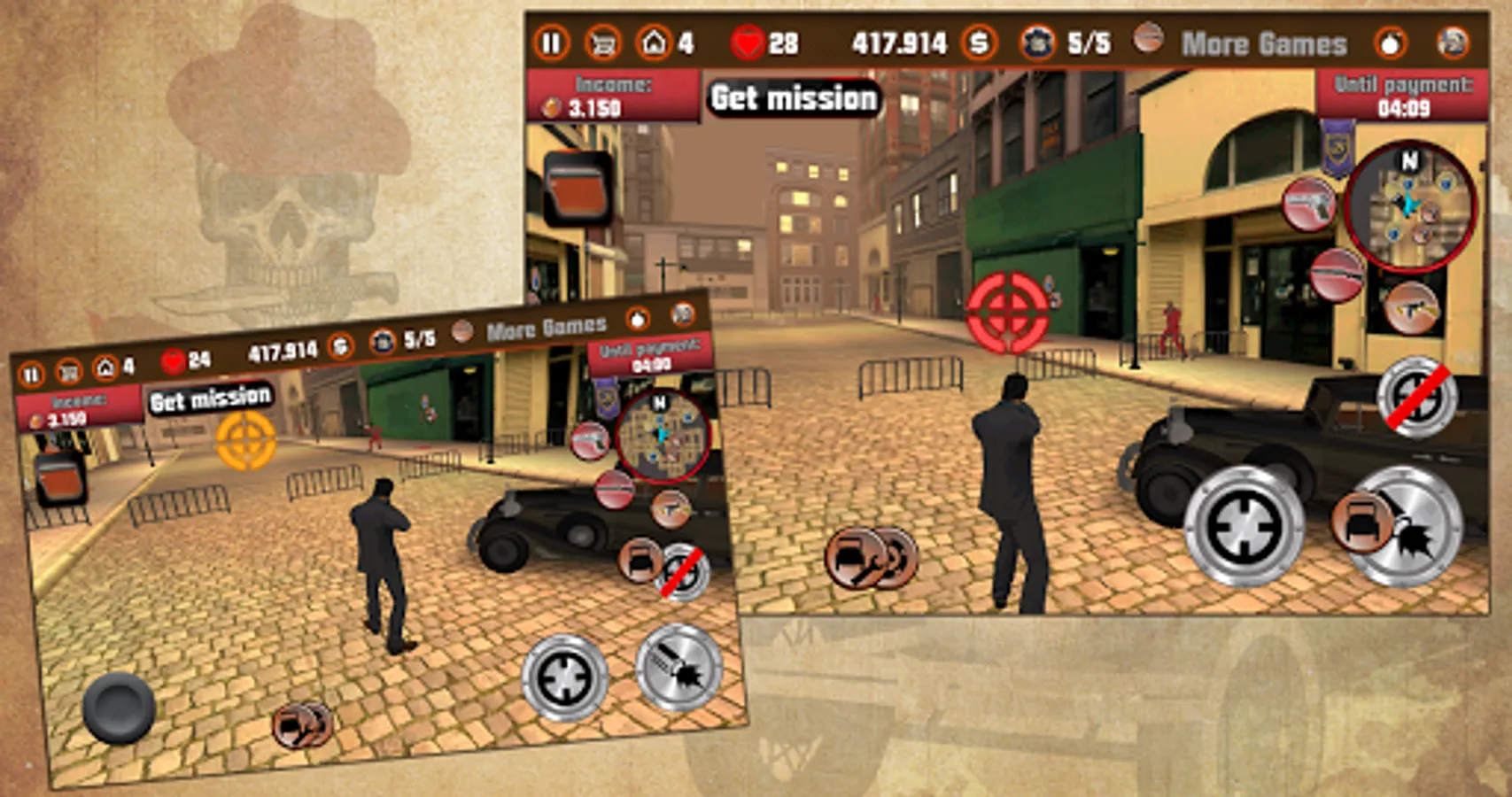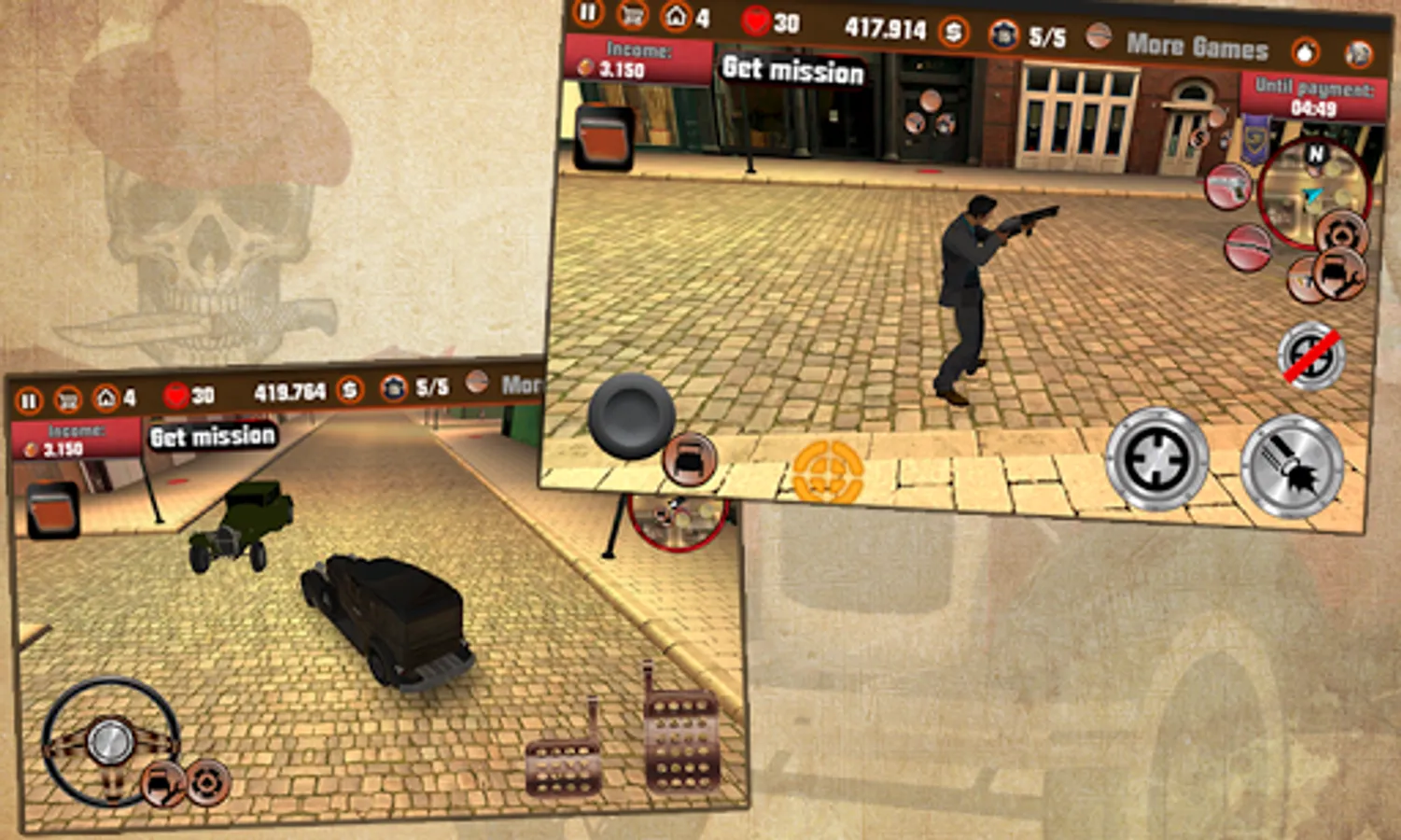 You begin with your territory establishing, take on small car thief missions to earn a quick bug. Or bring people away with legal taxi driving missions. But the best money is in setting up a network of different rackets, as you hire gangsters and muscles to take over and to protect them. Wreak havoc on your rivals establishments, by killing their henchmen and taking over all their operations. As the game goes on, you are going to set up your own illegal businesses, hiring more and more gangsters to protect you rackets, shops and other stuff.