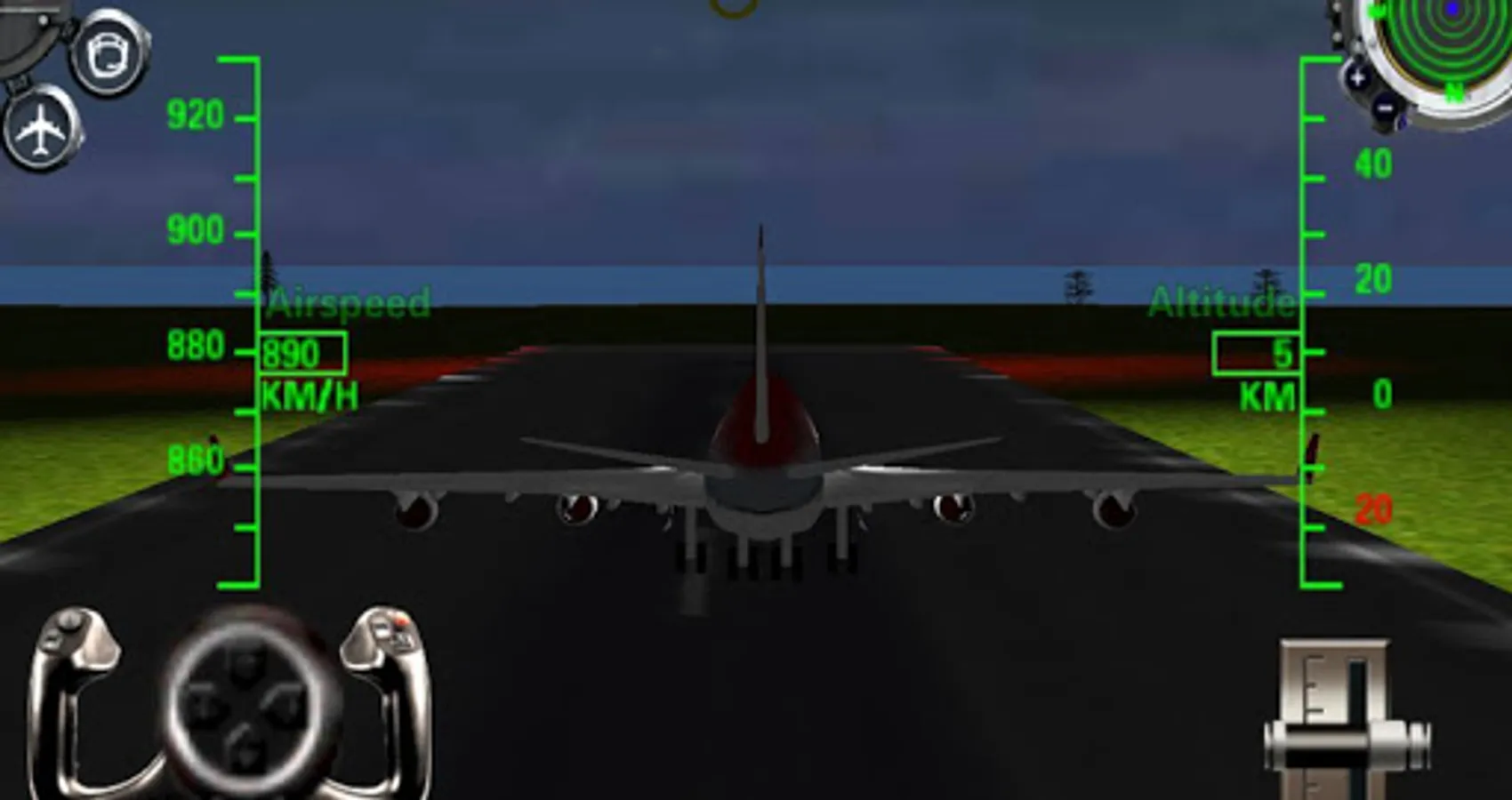 This new android flight simulator will challenge you to practice landing and taking off your airplane. The challenge of this flight sim 3D game is that you have a limit amount of time to get your commercial airplane safely on the ground. And landing and take-off is not all you need to learn with this 3D flight game, there is also a need for aircraft pilots that know how to taxi there airplane to the airport, and airport hangar.
