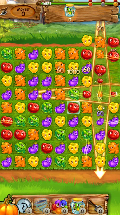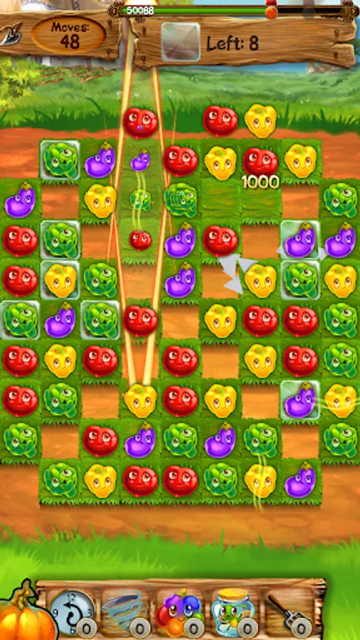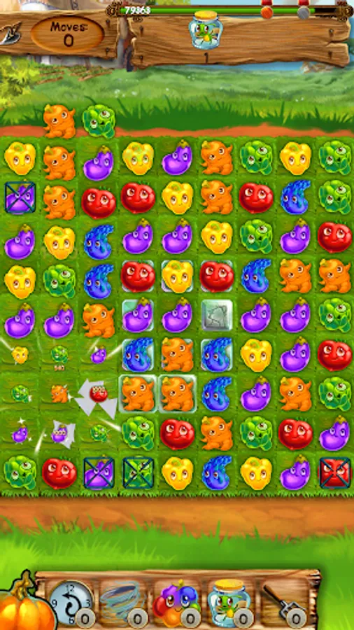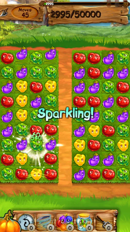 Become the best sweeper at the farm. Make lines of 3 or more to clear the board. Matching 4 or 5 items in line will create various special effects. All charms are vegetables like crops, onions, carrots, tomatoes, corn and many more.