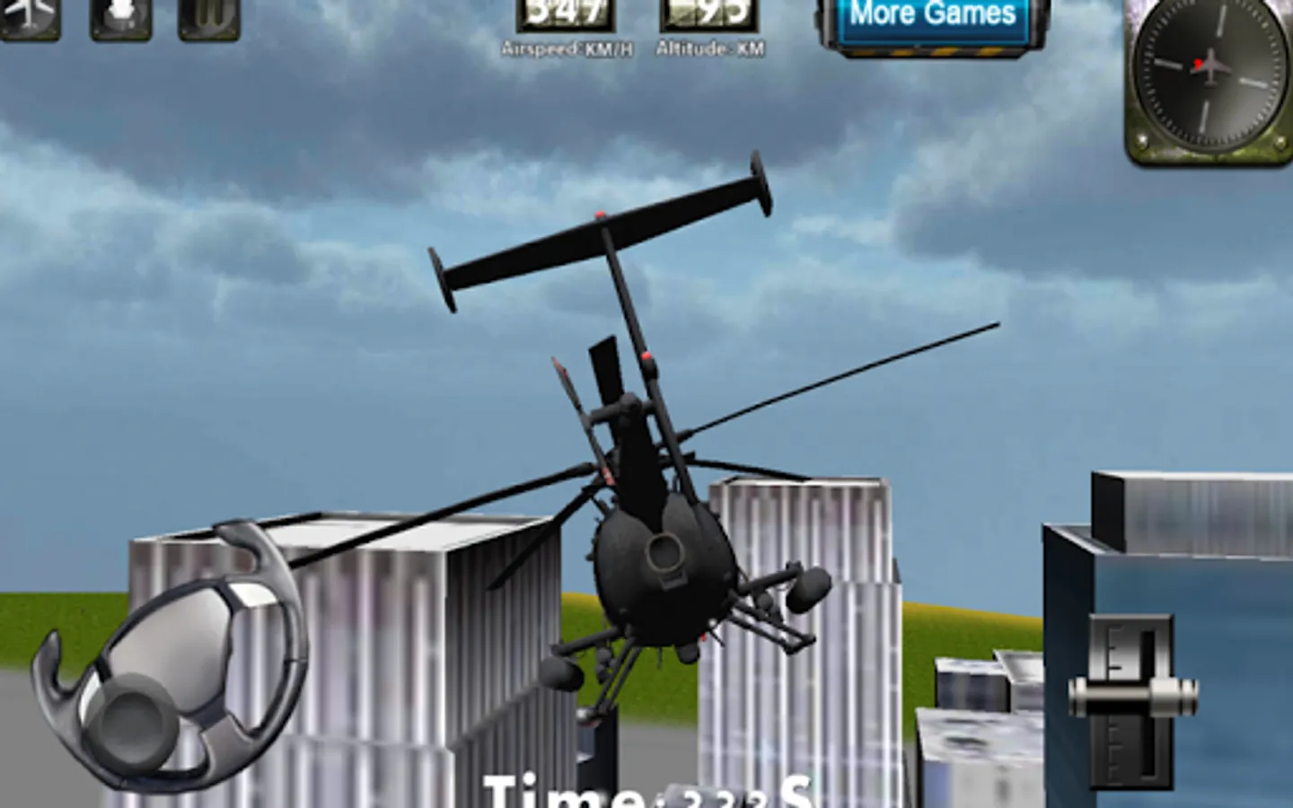 - Time challenge you you could enjoy the scenery of the sky around you but time is not on your side. Bring your Helicopter down before time runs out!