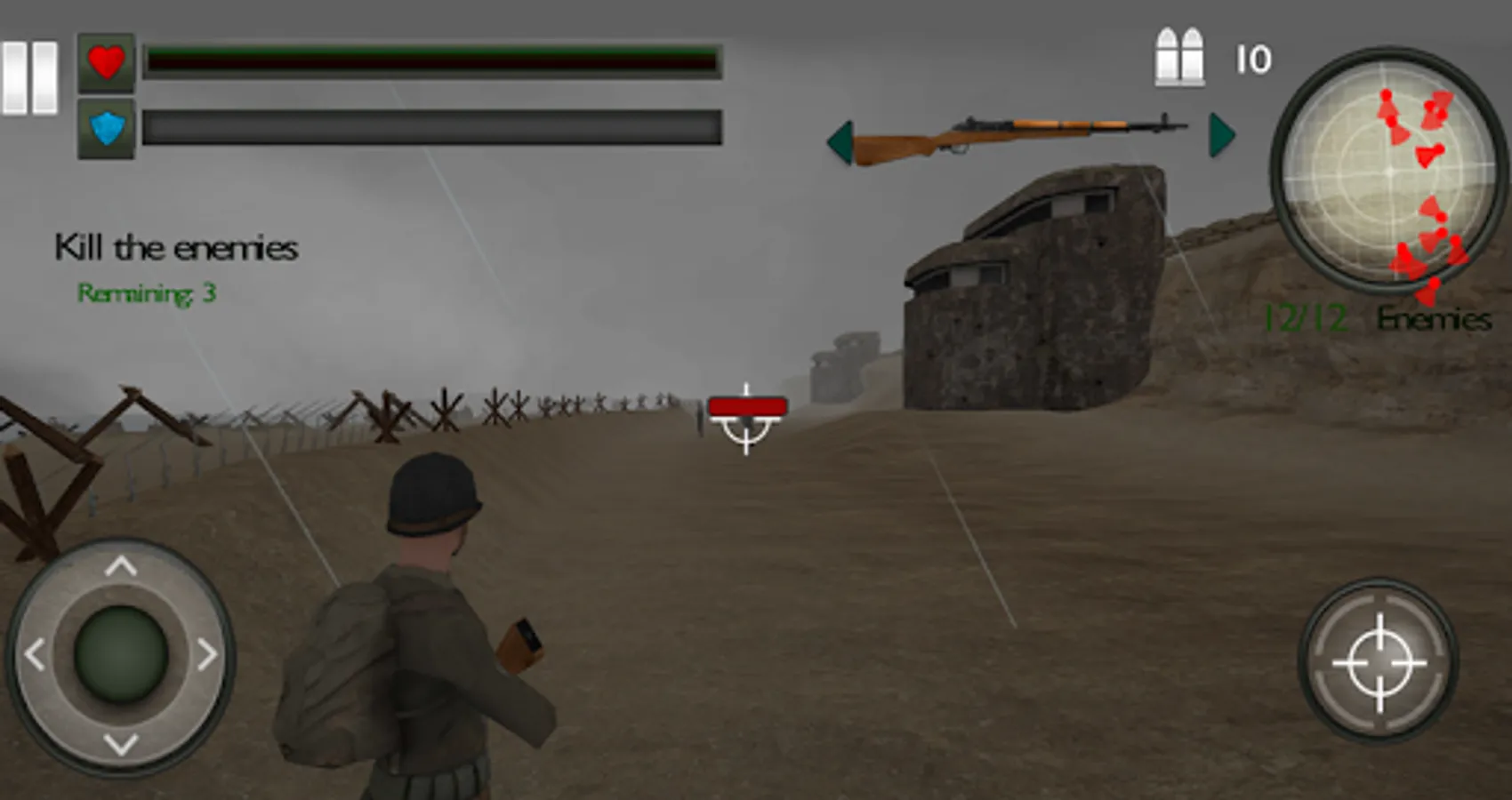 Gunfights usually involves bullets all around you, so you need to move from cover to cover fighting against the german troops in the open is not a good idea. As a army soldier you need to make use of your environment in this 3D world war 2 shooter game. The superheros of the past where the army soldiers during the second world war, can you become a battlefield frontline soldier during one of the most important battles of the second world war.