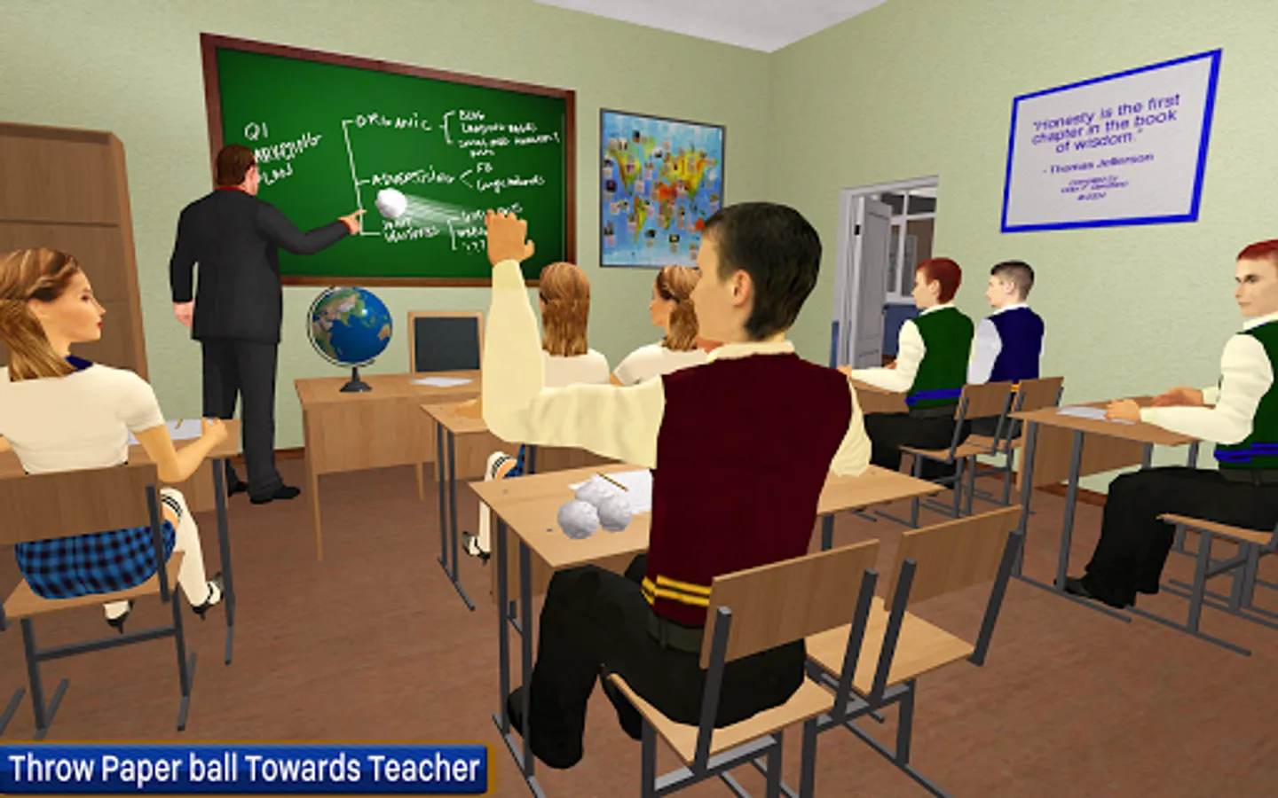 Your target is to behave like a craziest high school gangster, fight with your enemies. Throw stones and papers but be careful as this needs to be done secretly and don't get anyone's attention. Gain some respect by fighting with your enemies. Snatch eatables from others. It's up to you to decide whether to go in love with someone or roam freely in the school building. Cctv cameras are installed everywhere. So be careful and get yourself ready to live the true life of a high school gangster.