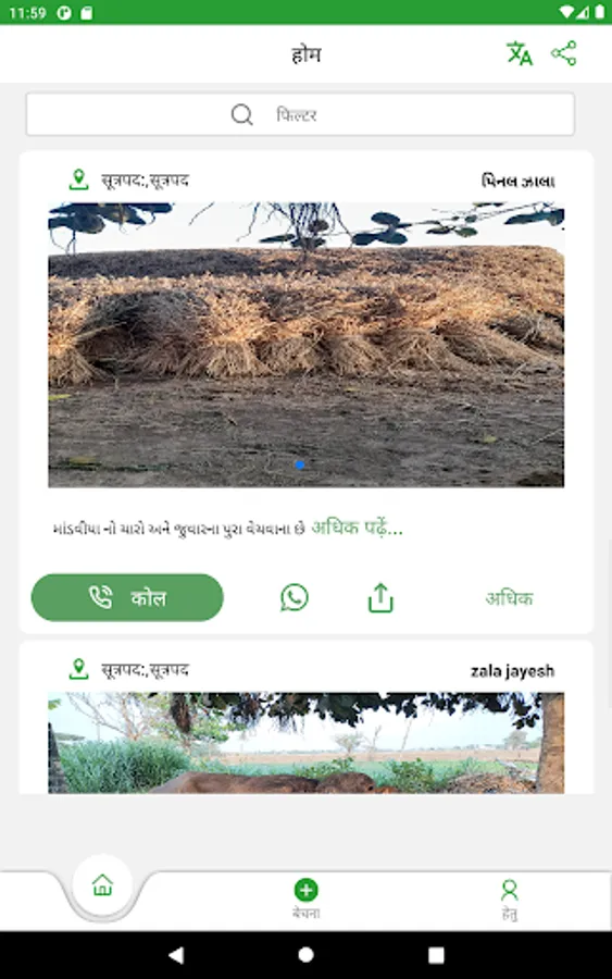 બિયારણ, રોપ, ગાય, ભેંસ, બળદ, ઘોડા, મરઘાં, ઘેટાં-બકરા, ખેતીના ઓજાર, ટ્રેક્ટર, દરેક વાહન, દવા, મજૂરો, ખેત-જમીન અને ખેતીની દરેક વસ્તુની લે-વેંચ માટે આ એપ્લિકેશન તમે પણ ડાઉનલોડ કરો અને ખેડૂત-વેપારી સાથે તમે પણ જોડાવ.