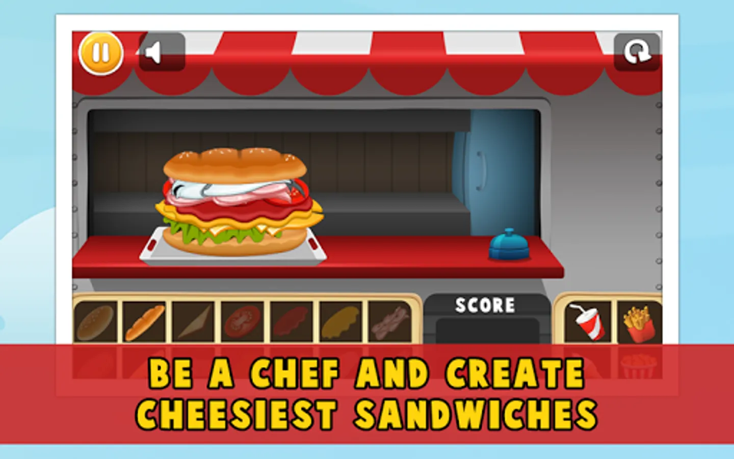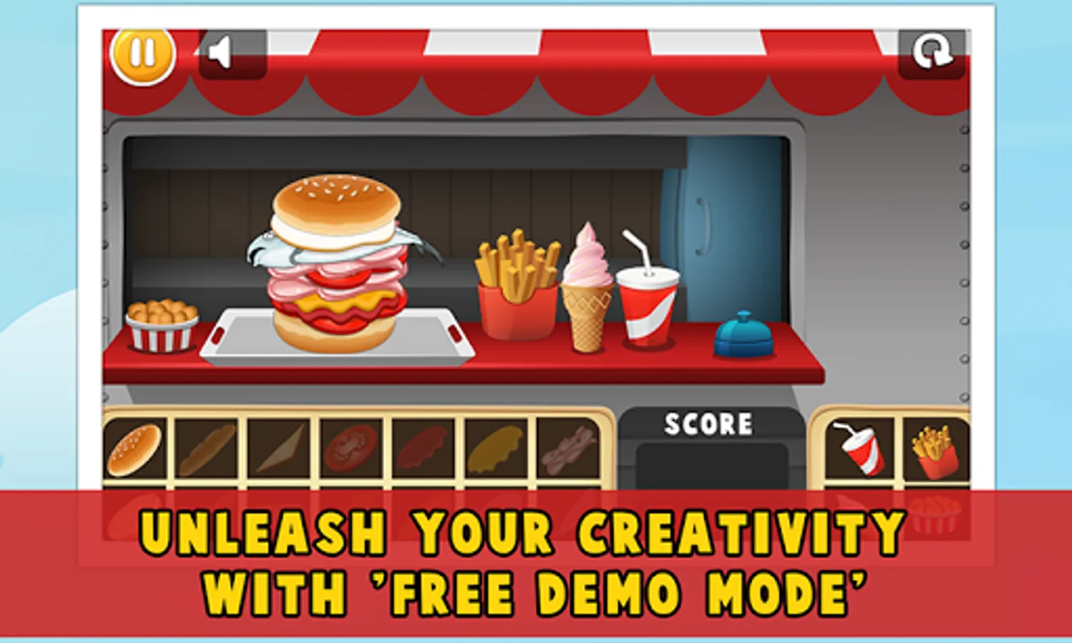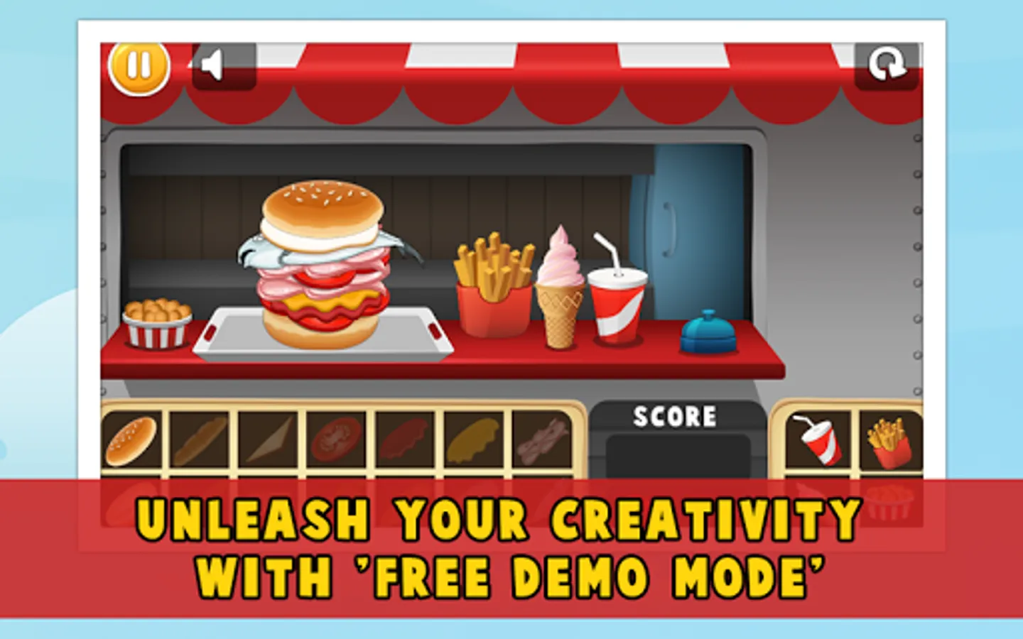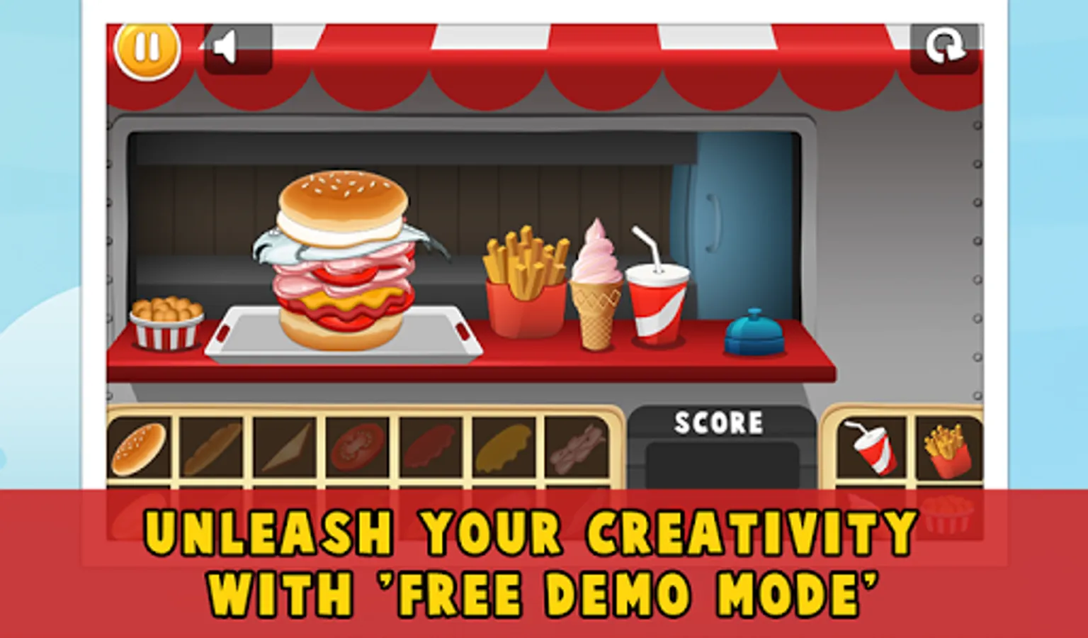 ✔ In the time attack mode, you can choose 60, 90 or 120 seconds to make as much hamburgers and sandwiches as you can and beat your own highscore!