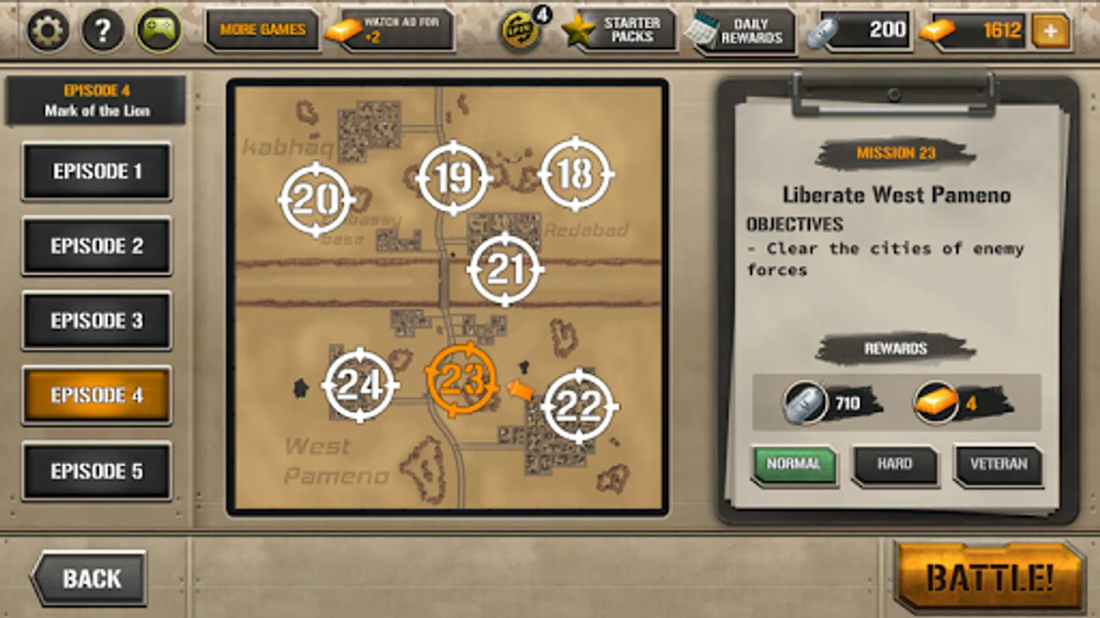 In Modern Tank Force: War Hero you can fight yourself through desert tank battles in campaign mode or go all out in a fast paced mode where you can climb the leaderboard by defeating endless waves of enemies.