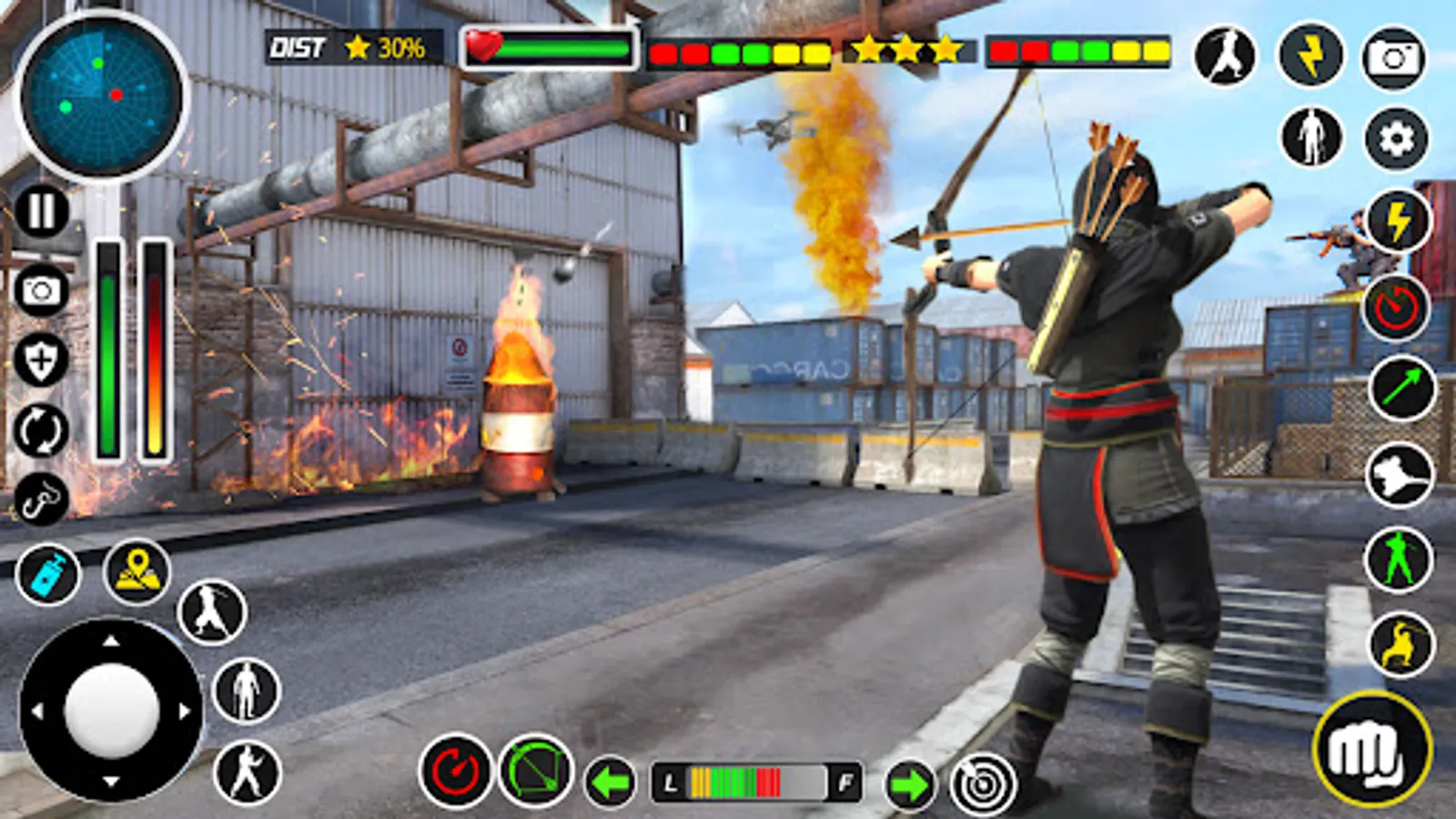 Jump from rooftops shooting arrows to clean up army base. Combat shooting enemies with dozen of bow and arrow at your disposal. Fight bravely in archer assassin combat missions as real ninja warrior 2018. Avoid lethal deadly strikes for your ultimate survival. This Action packed fighting combat experience is going to test your real target accuracy, FPS shooting skills and speed of execution.