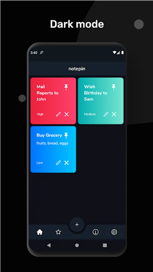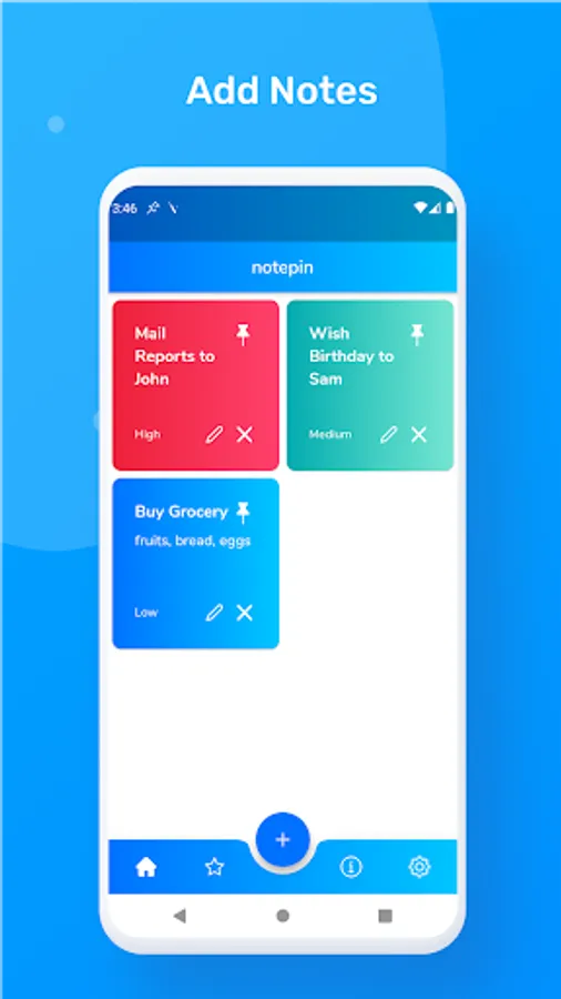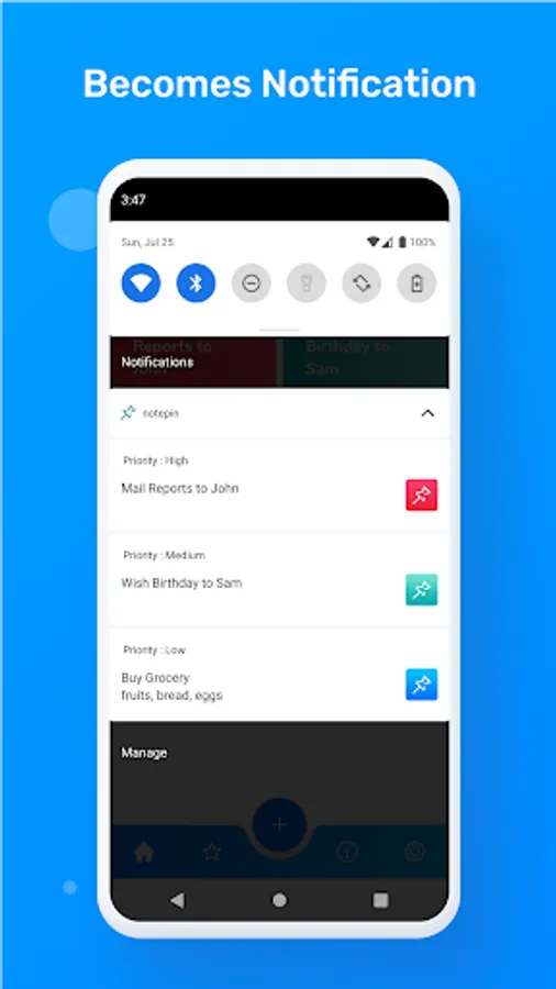 Reminder apps send a notification or ring alarm to which a user mostly dismisses and in-spite of getting the reminder forgets to do the task as it gets out of the mind after a few minutes of dismissing reminder. In comparison notepin helps you pin notes or reminders as notifications so that it constantly reminds you every time you unlock your phone or swipe down the notification panel.
