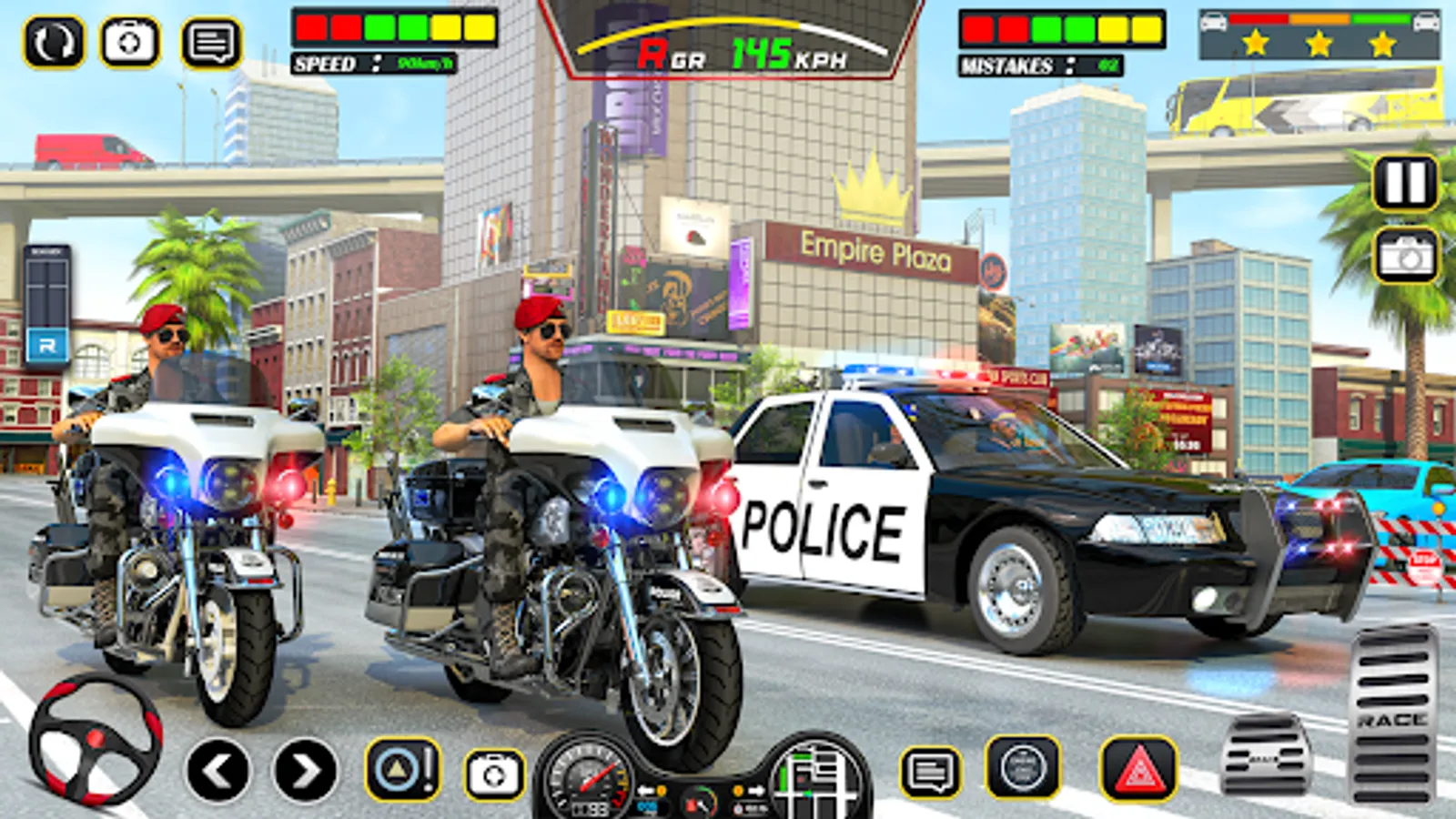 • Smooth and Intuitive Controls of Police Heavy moto Bike and car driving.