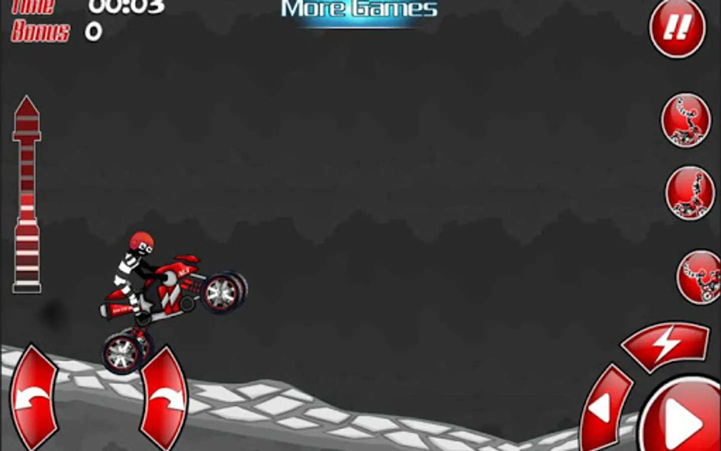 Experience one of the most fast paced action packed motocross uphill bike riding in super beautiful stunning environments. With cool designed bikes with super realistic physics, handling and real realistic sounds. Its a simple and fast/paced physics based free game, use the on screen controls to steer your bike and to balance the bike in the right way. Launch yourself from enormous jumps, land your bike safely on the ground, do wheelies on your rear wheel and crash your way through a variety of well designed levels. Test your reflexes to the max this will mean the difference between surviving or crashing the bike into the ground.