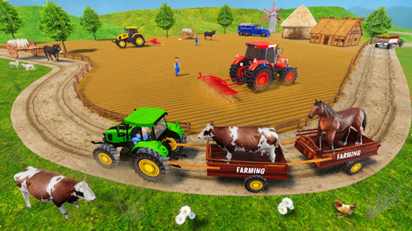 Transport your resources in Tractor Driving Games and Tractor Farming Game to expand your farms