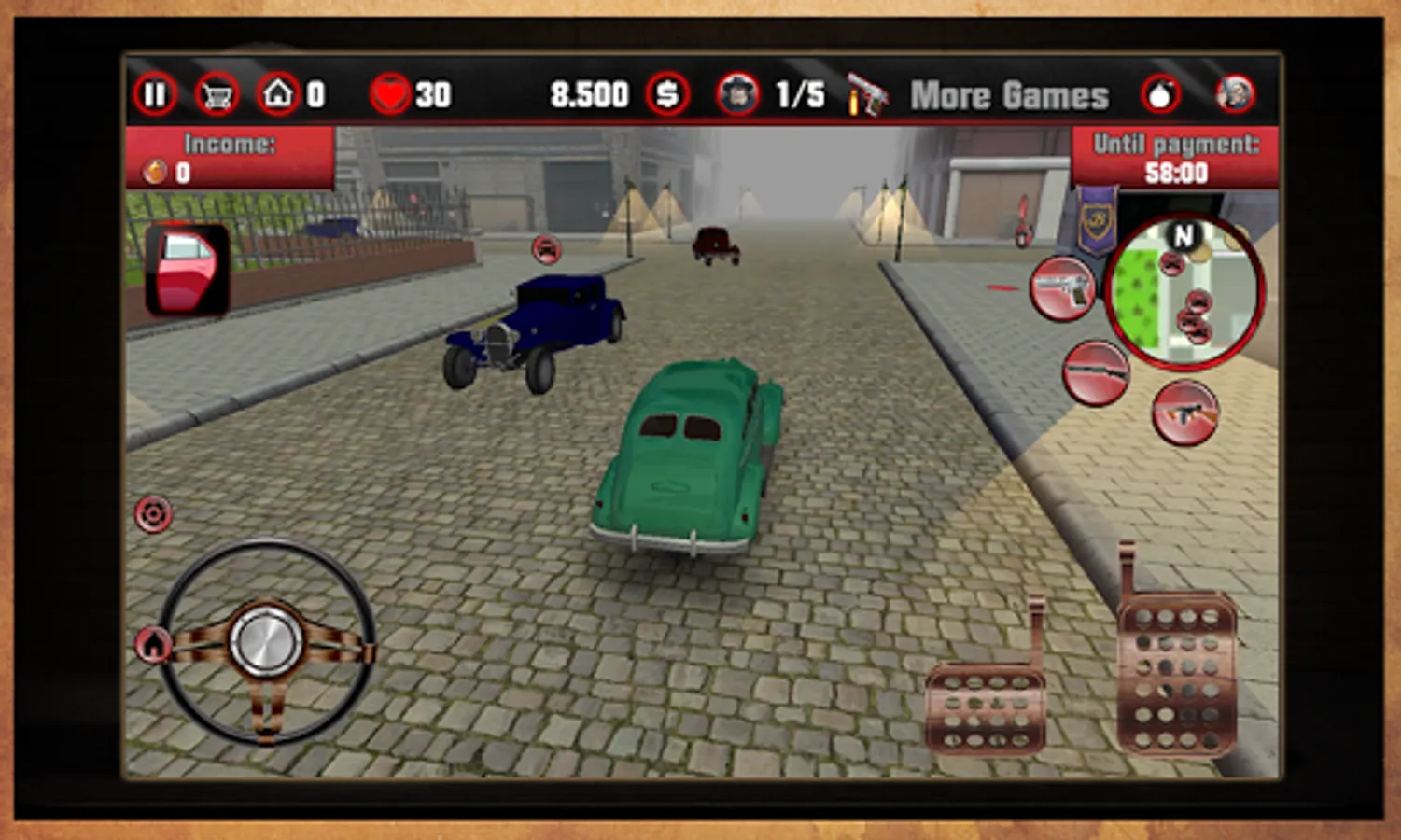 Vendetta mobster wars 3D puts you right into the action of the legendary mafia years of the late 1930 till 1950. Featuring a very deep mobster driven gameplay feeling with both behind the wheel action and on foot action as well. Vendetta mobster wars 3D is very enjoyable for the fans of this mafia underworld games. Its a great free to play action driven mafia game which offers great action scenes as well as racing through a massive city that you can try to control.