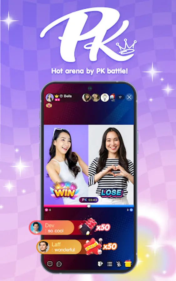 Enjoy chatting with your buddies and followers. Meet new friends and send them messages and gifts.