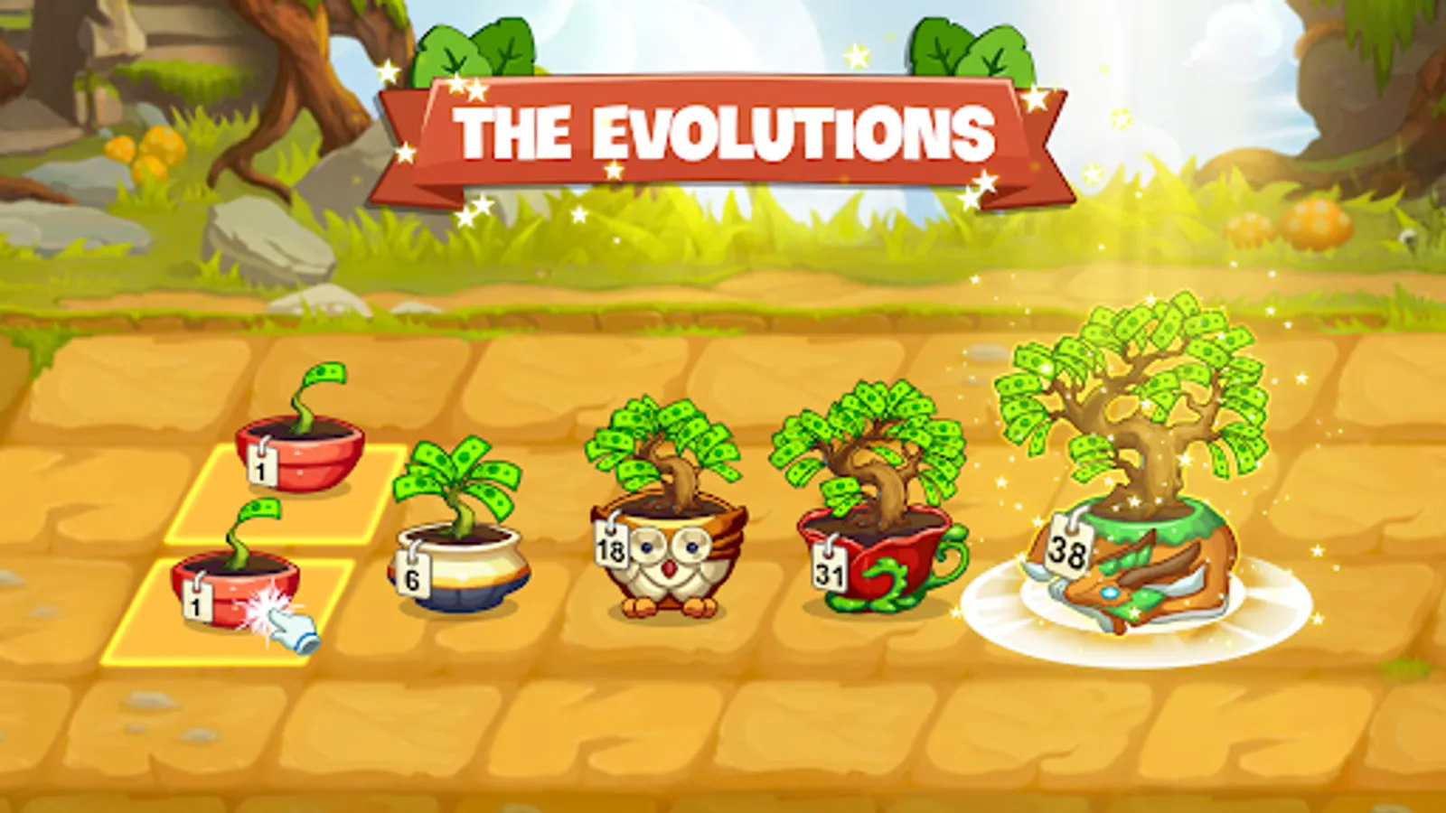 Each pot generates a specific amount of money, and the better the pot and tree, the more money is earned.