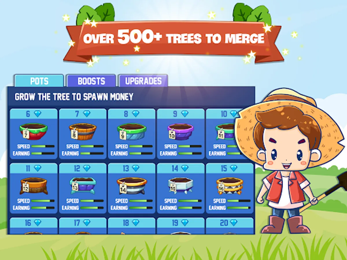 The game involves putting pots and planting trees and merging similar pots together to create better ones.