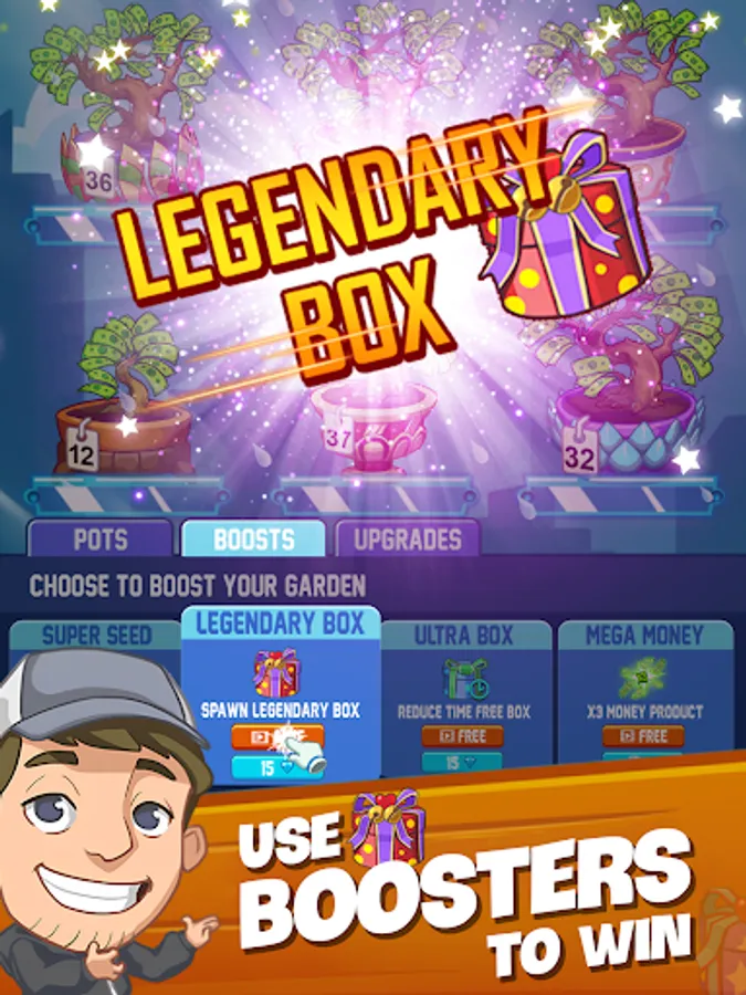To play the game, you simply need to buy pots and plants, collect coins, and make a profit. You can also purchase new pots, tap the pots for coins, buy boosts for more coins, and receive free Legendary Gifts from bees.
