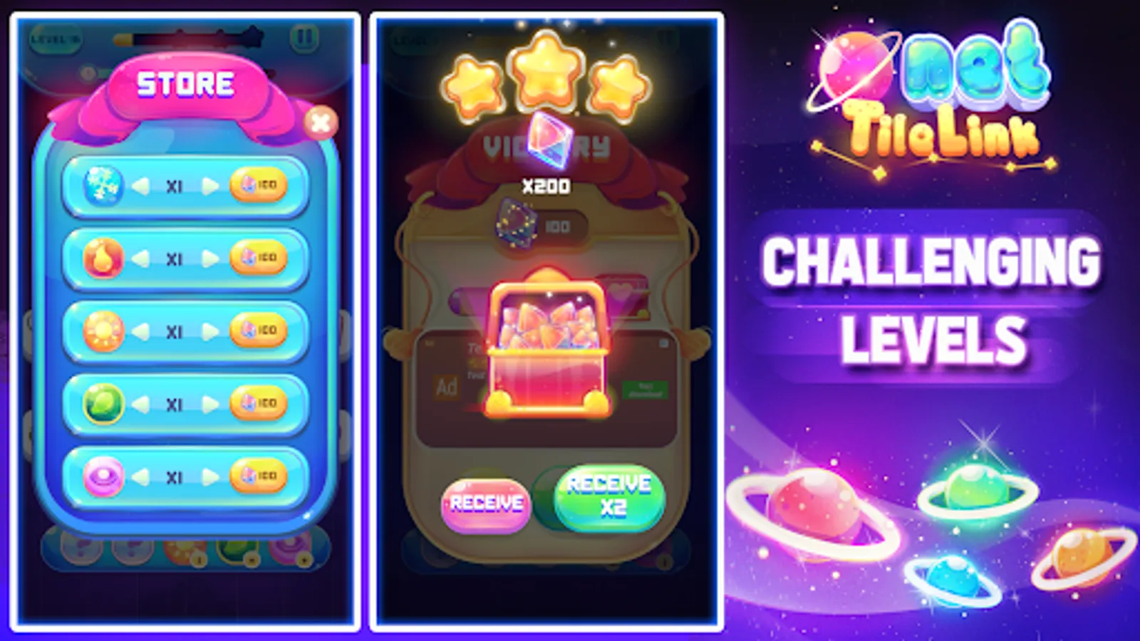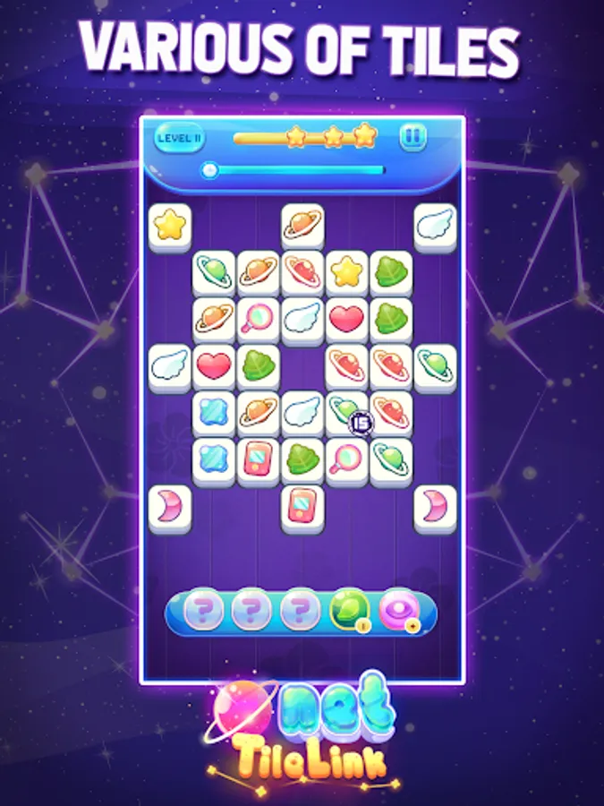 Plan your strategy by connect 2 same tiles, using boosters smartly to overcome the difficulty enhanced levels! Remove tiles and collect gems across hundred of levels, ensure you will continue to play more and more!
