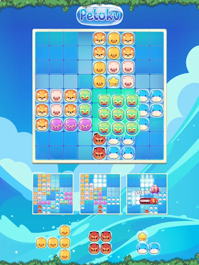Playing the Petoku Game is so addicting! A colorful and interesting puzzle game with blocks like adorable animals. Keep challenging yourself to get a higher score! It's not easy to break your own record, but it's fun to keep trying! Adjust your strategy and upgrade your skills!