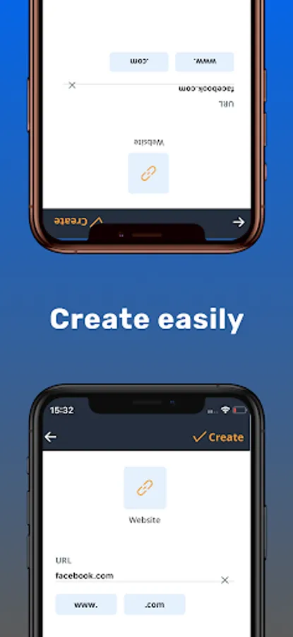 All types of QR codes are supported in this QR code generator app. You can create QR codes for websites, text, Wi-Fi, business cards, apps, SMS, and QR codes for WhatsApp, Instagram, Facebook, and more.
