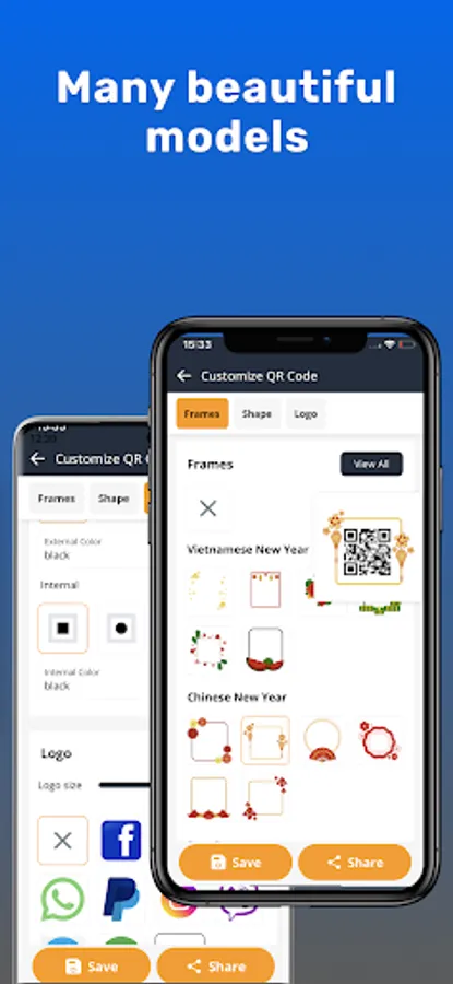 The QR code creator app provides a variety of QR code templates to help you create beautiful QR codes in simple steps.